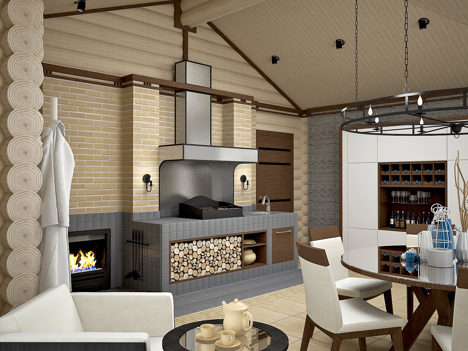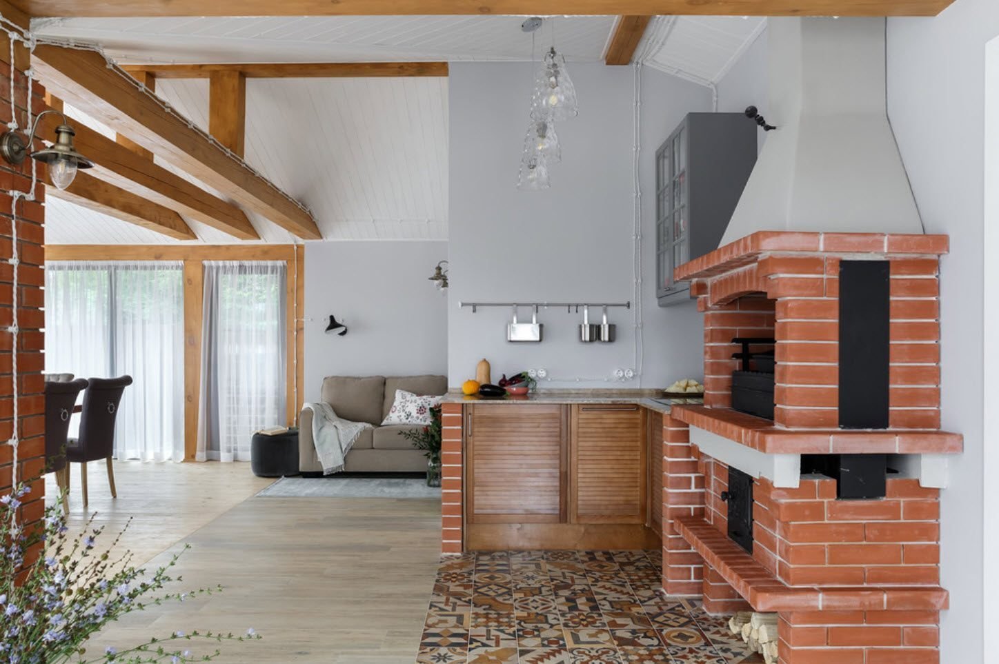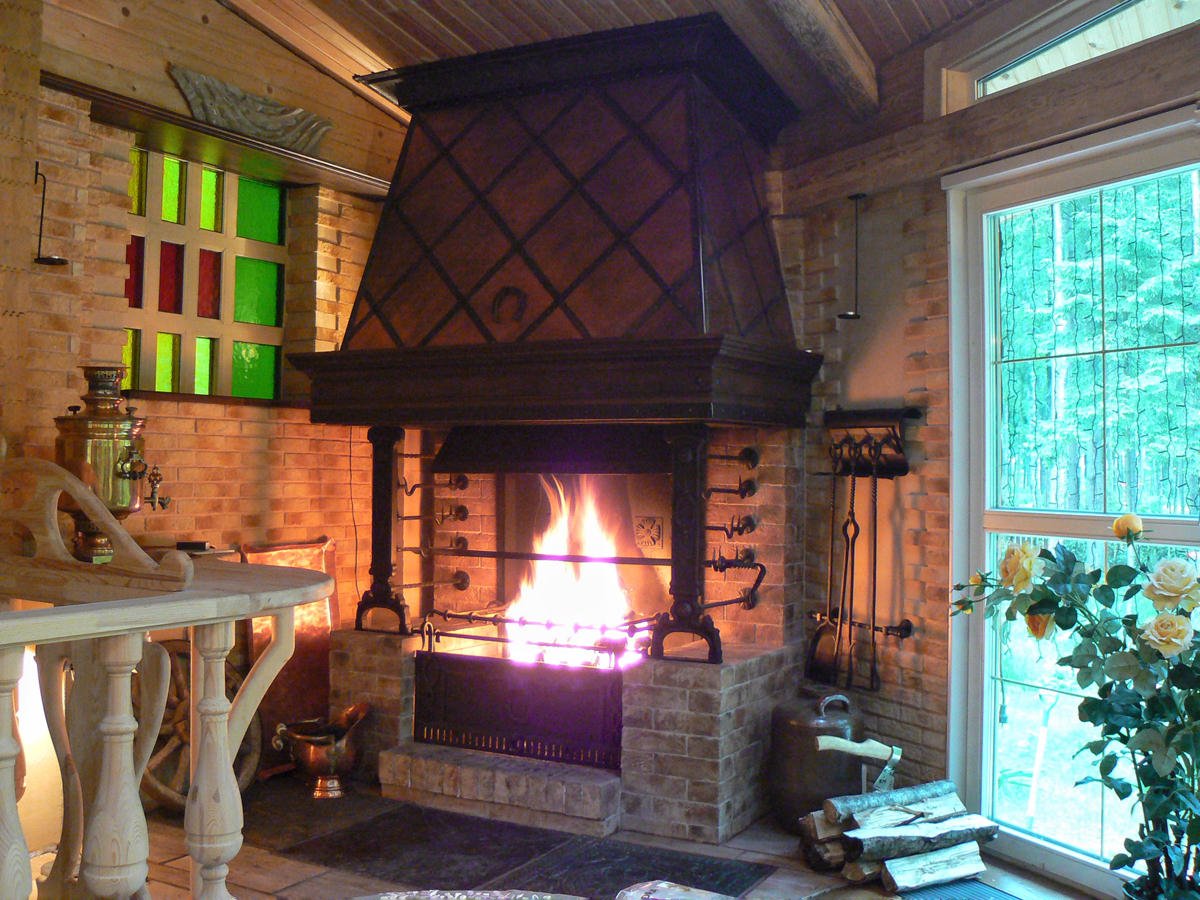 Камин с барбекю в доме
