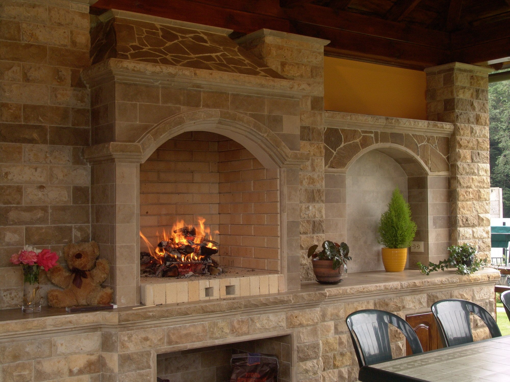Каменная беседка с камином