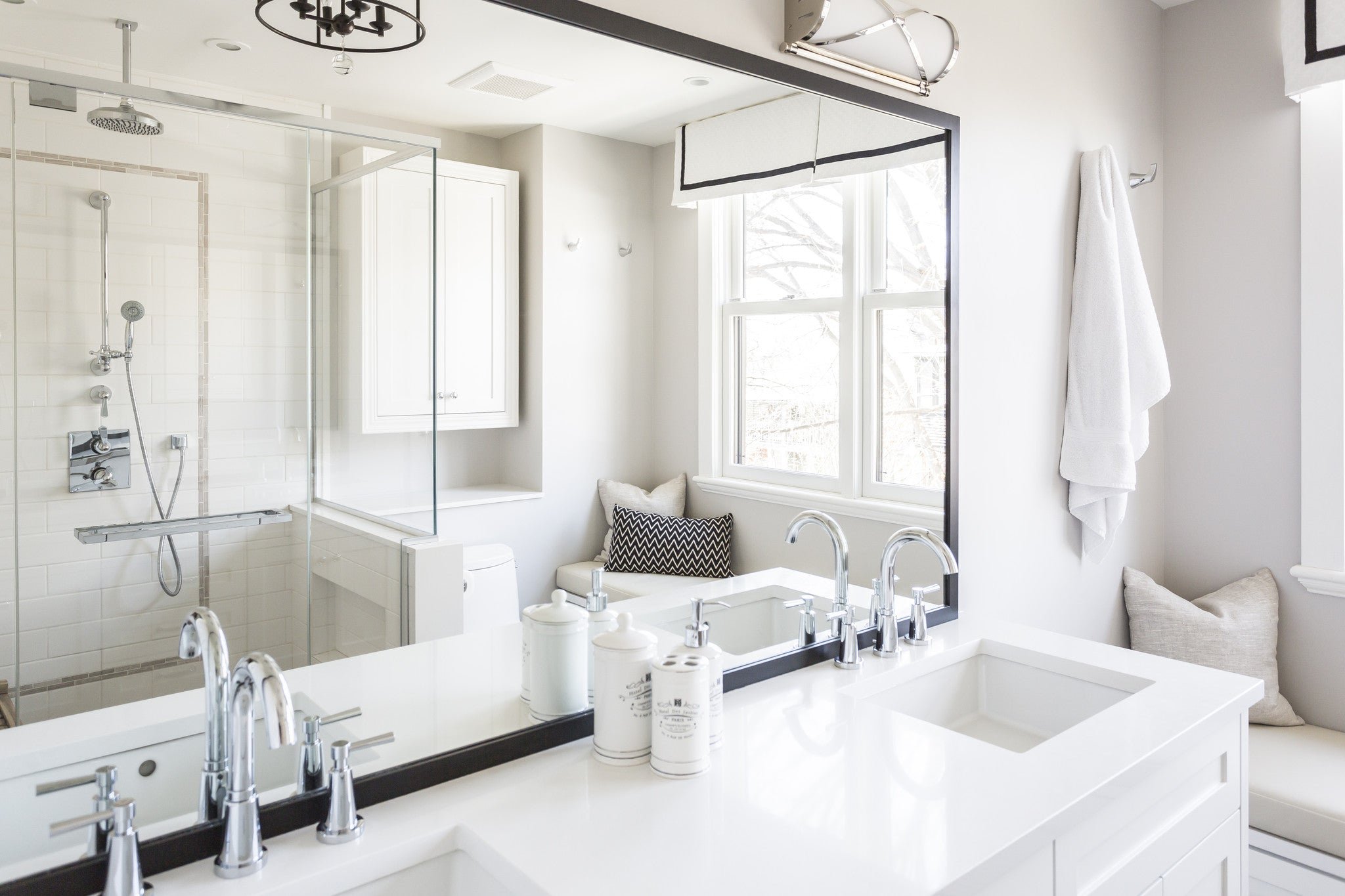 Ванная комната с душем в светлых тонах