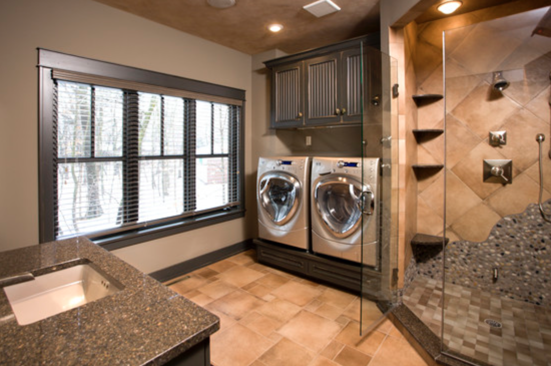 Ванная комната с душем и постирочной