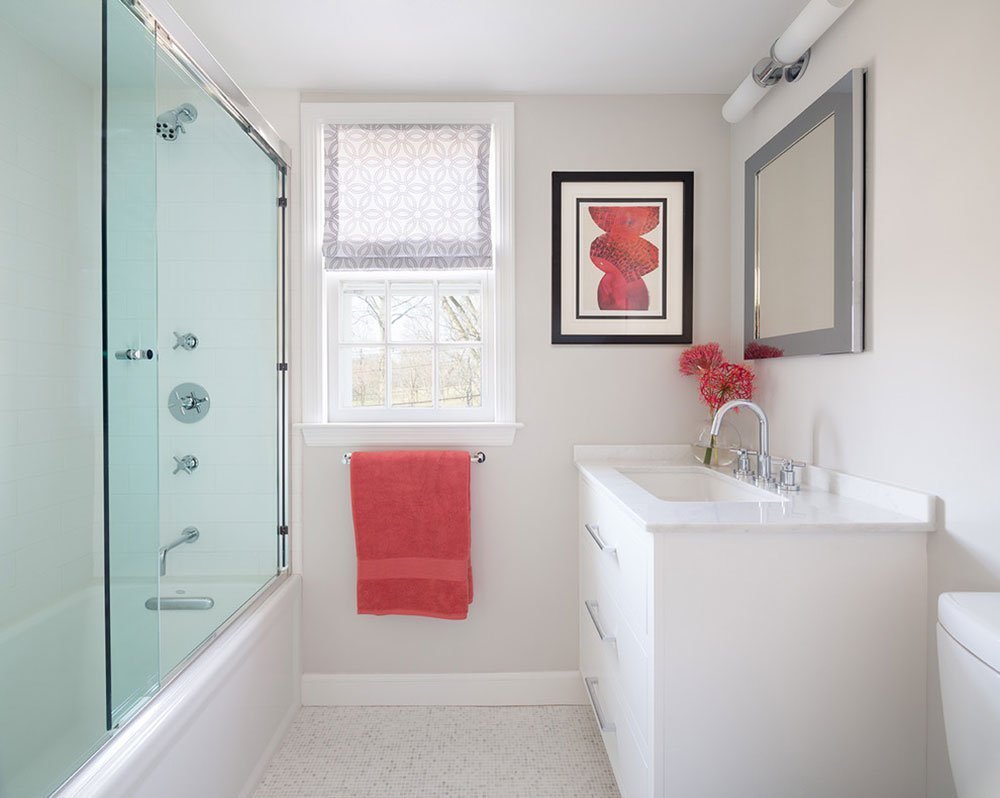 Ванная с белой плиткой и покраской