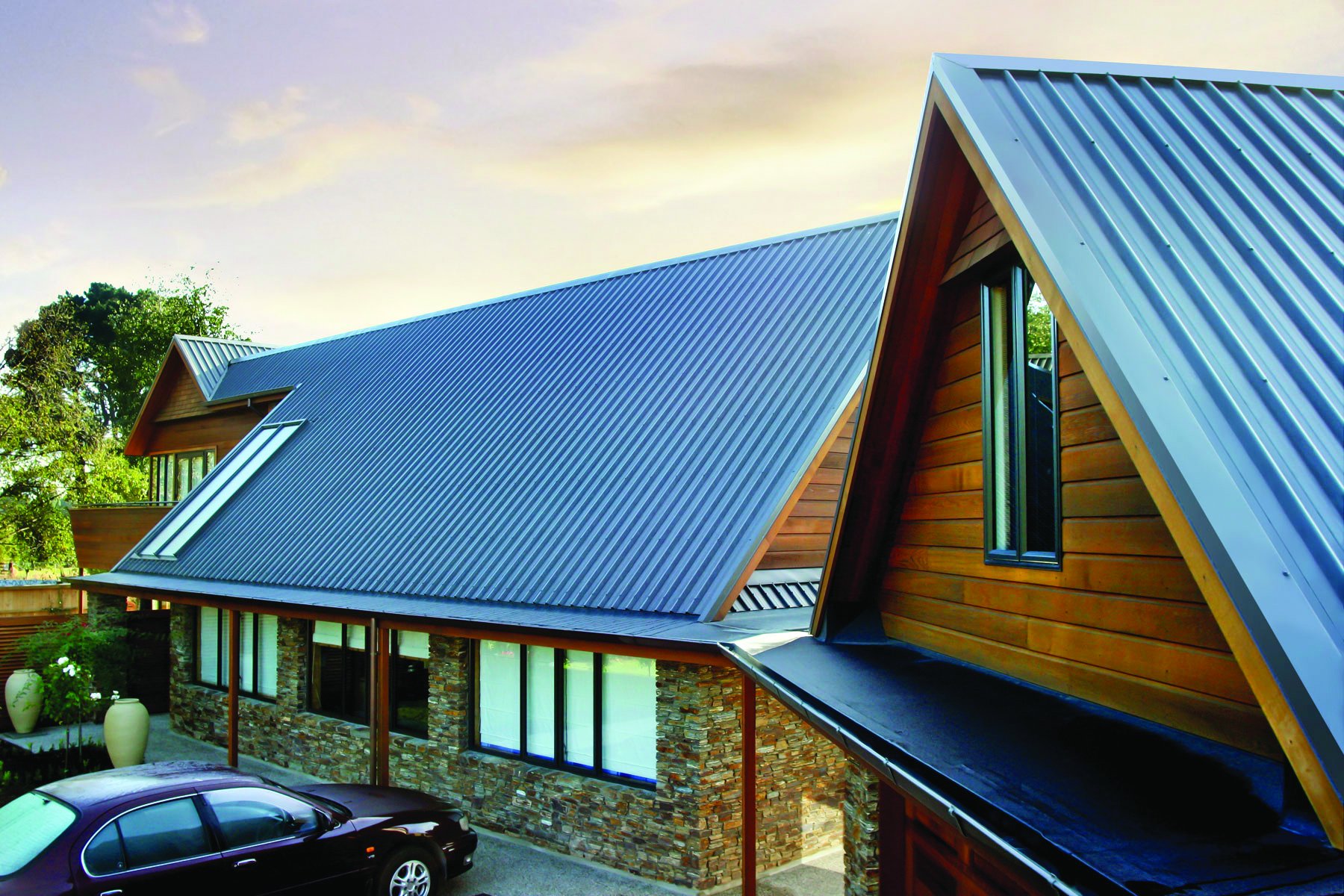 Дом с крышей из оцинкованного профнастила