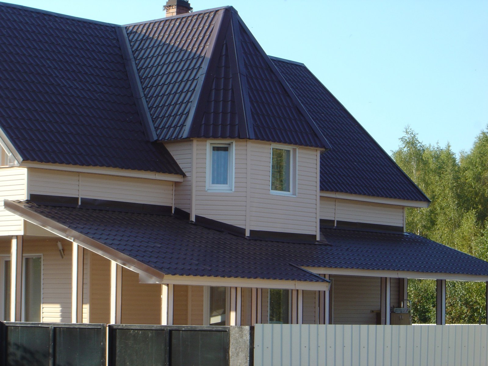 Дом с крышей из металлочерепицы