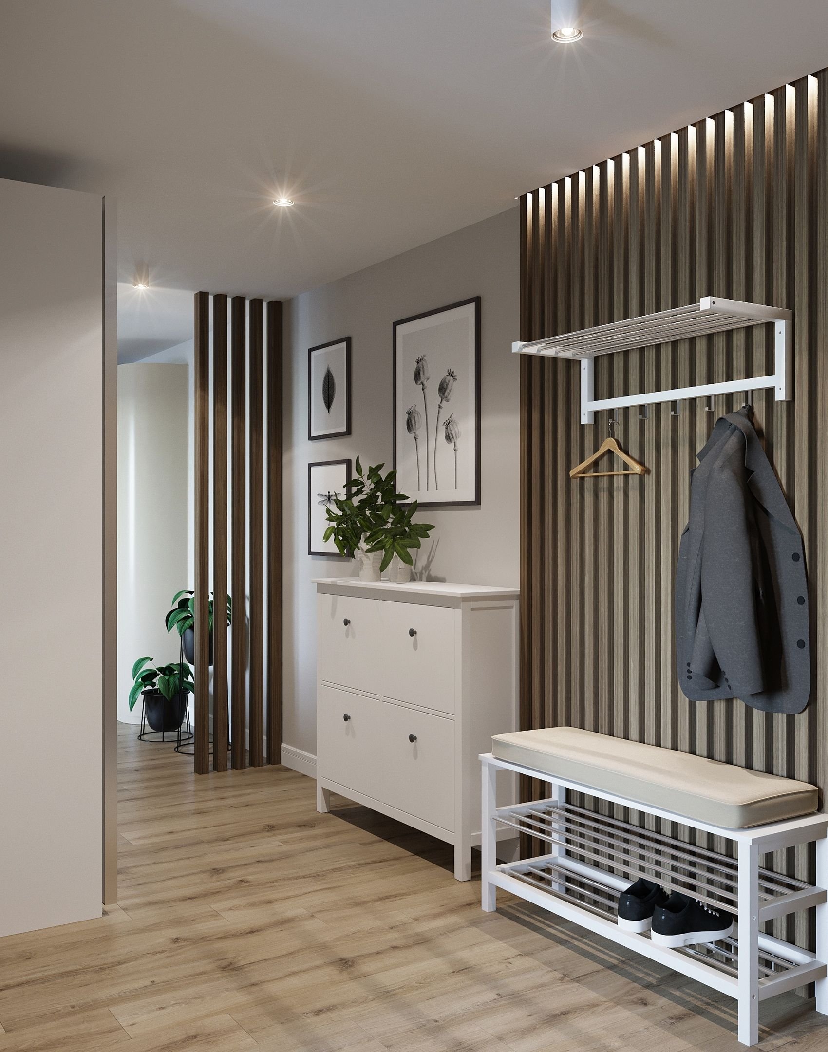Прихожая с деревянными рейками