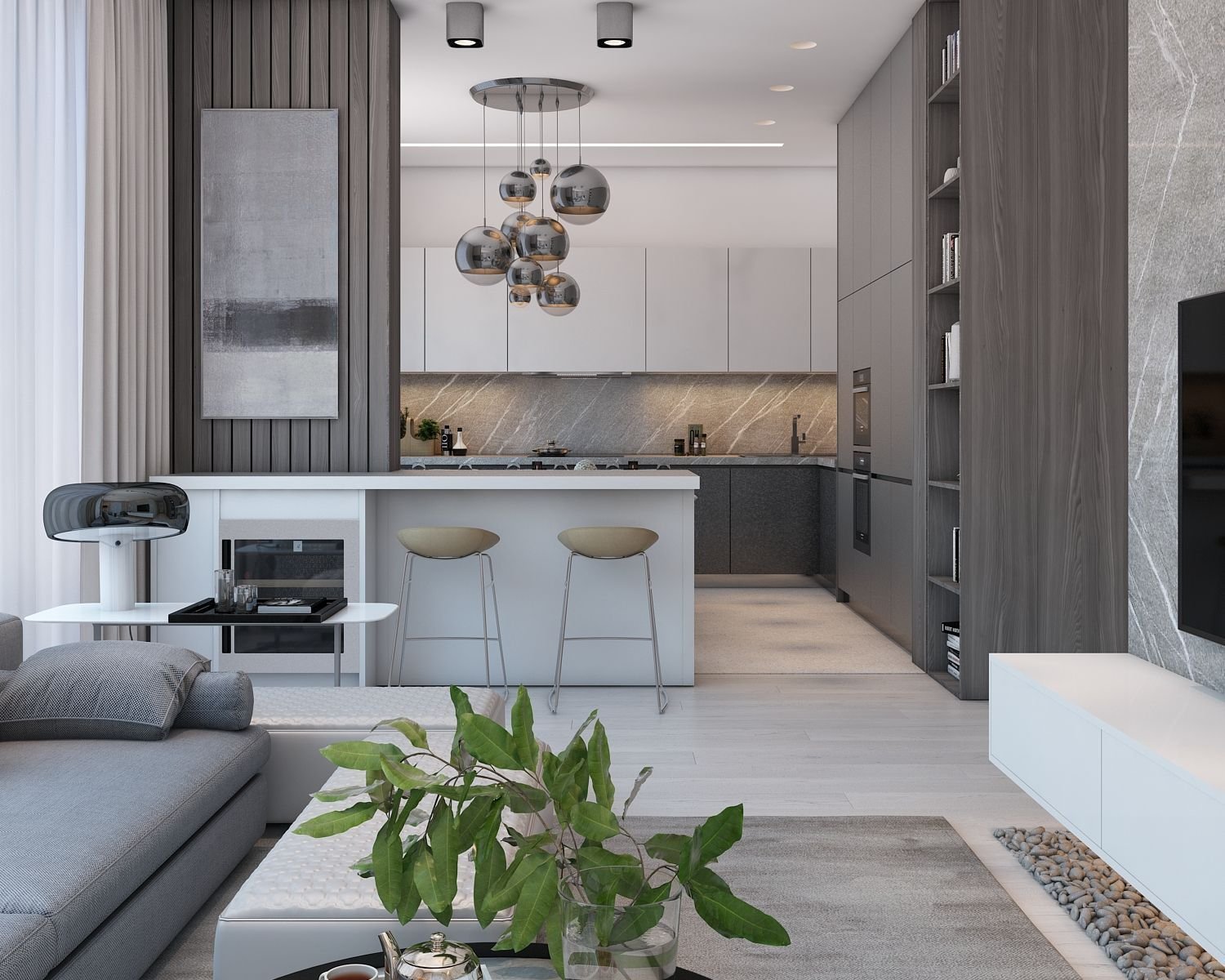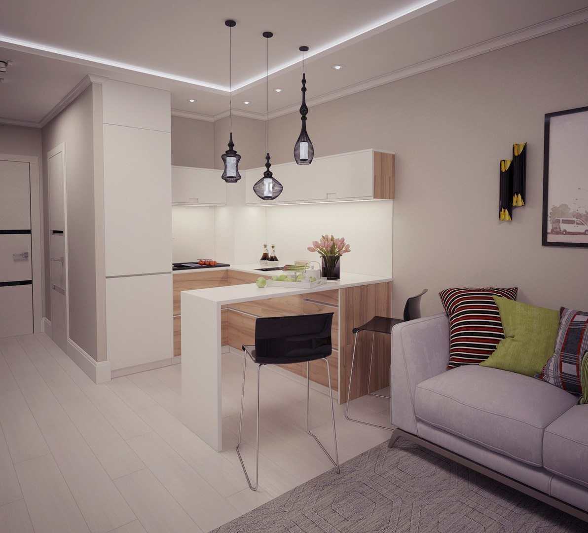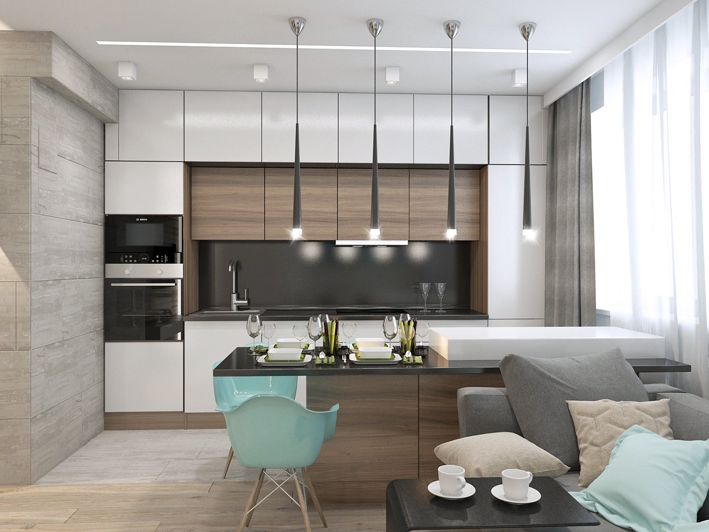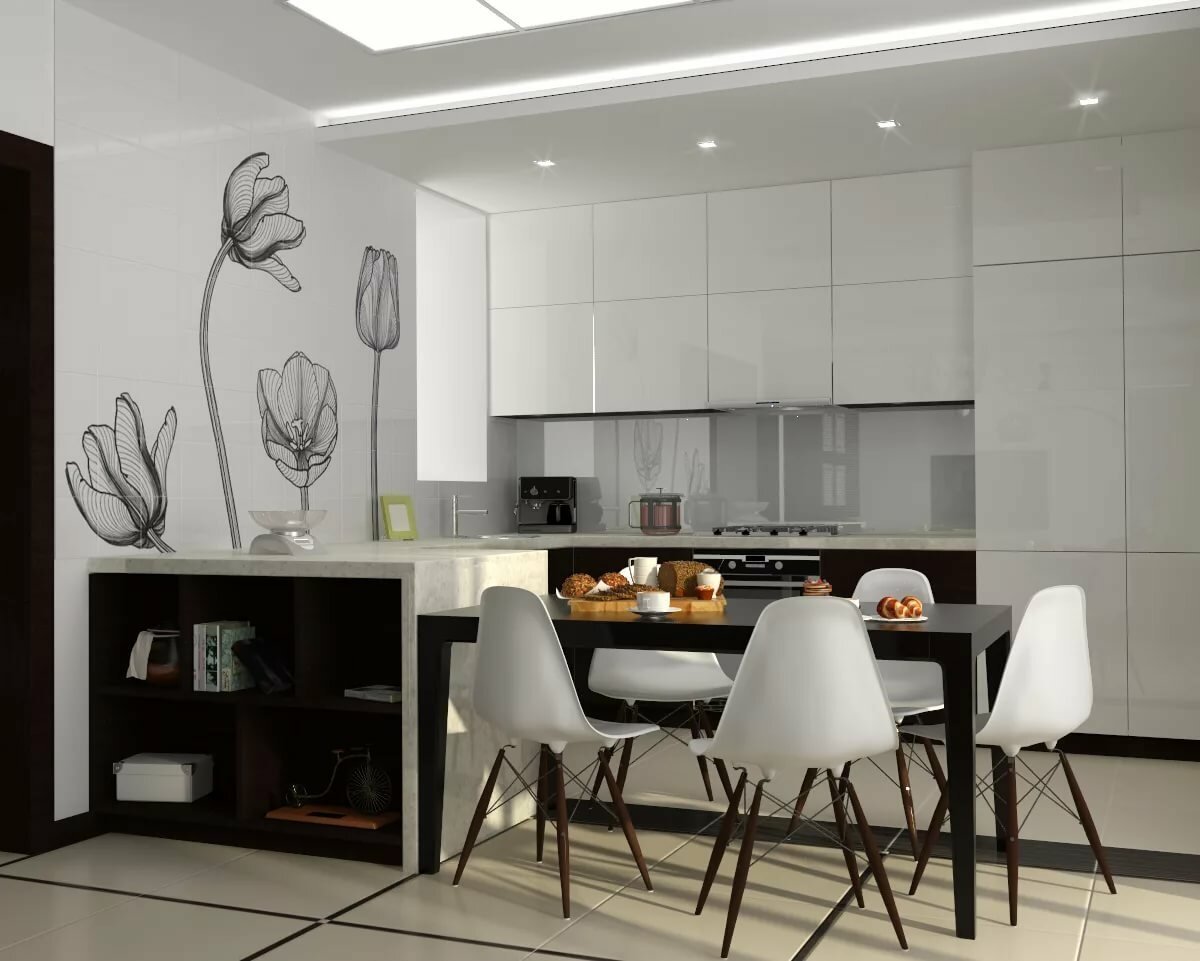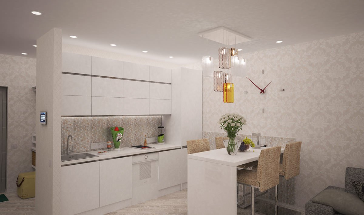 Кухня гостиная визуализация