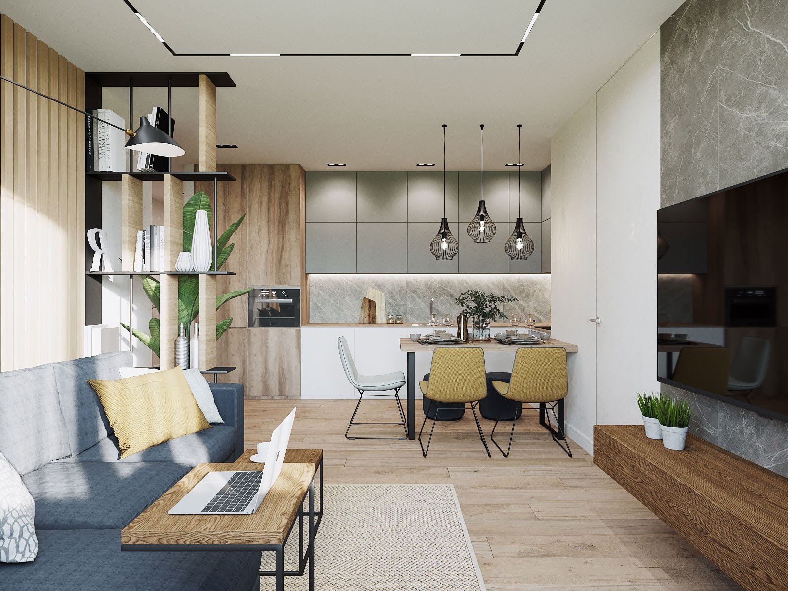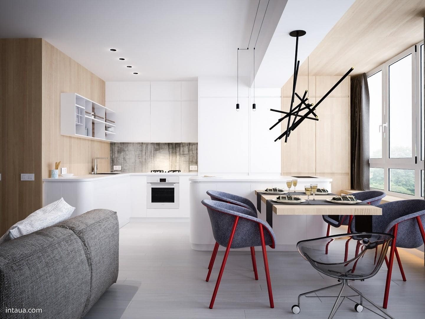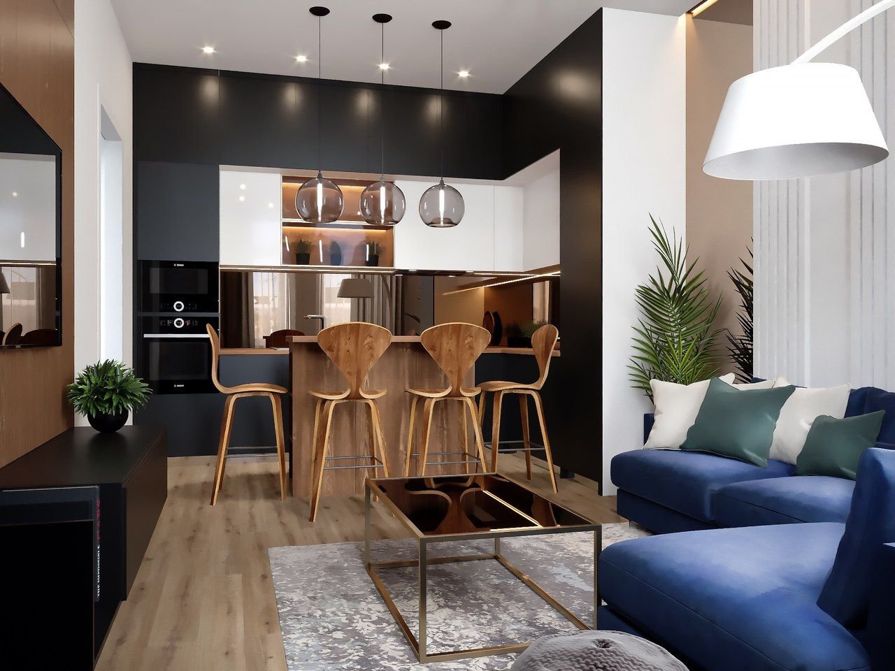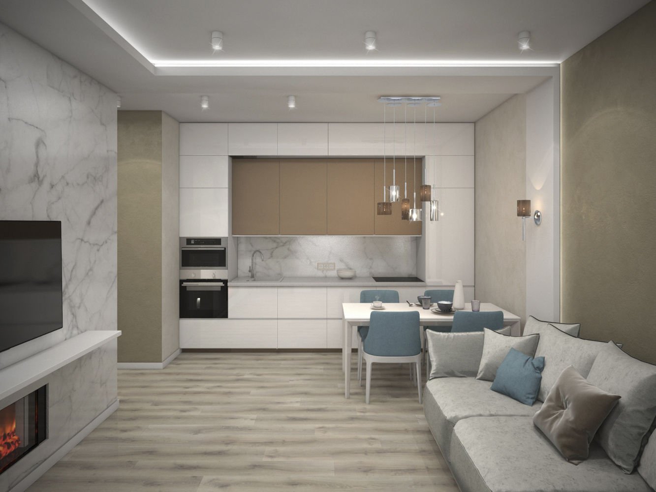 Кухня гостиная визуализация