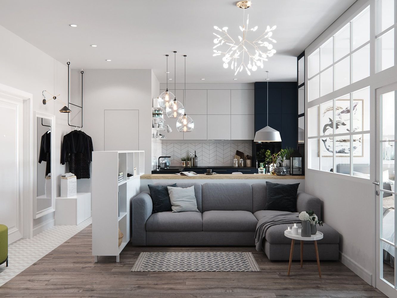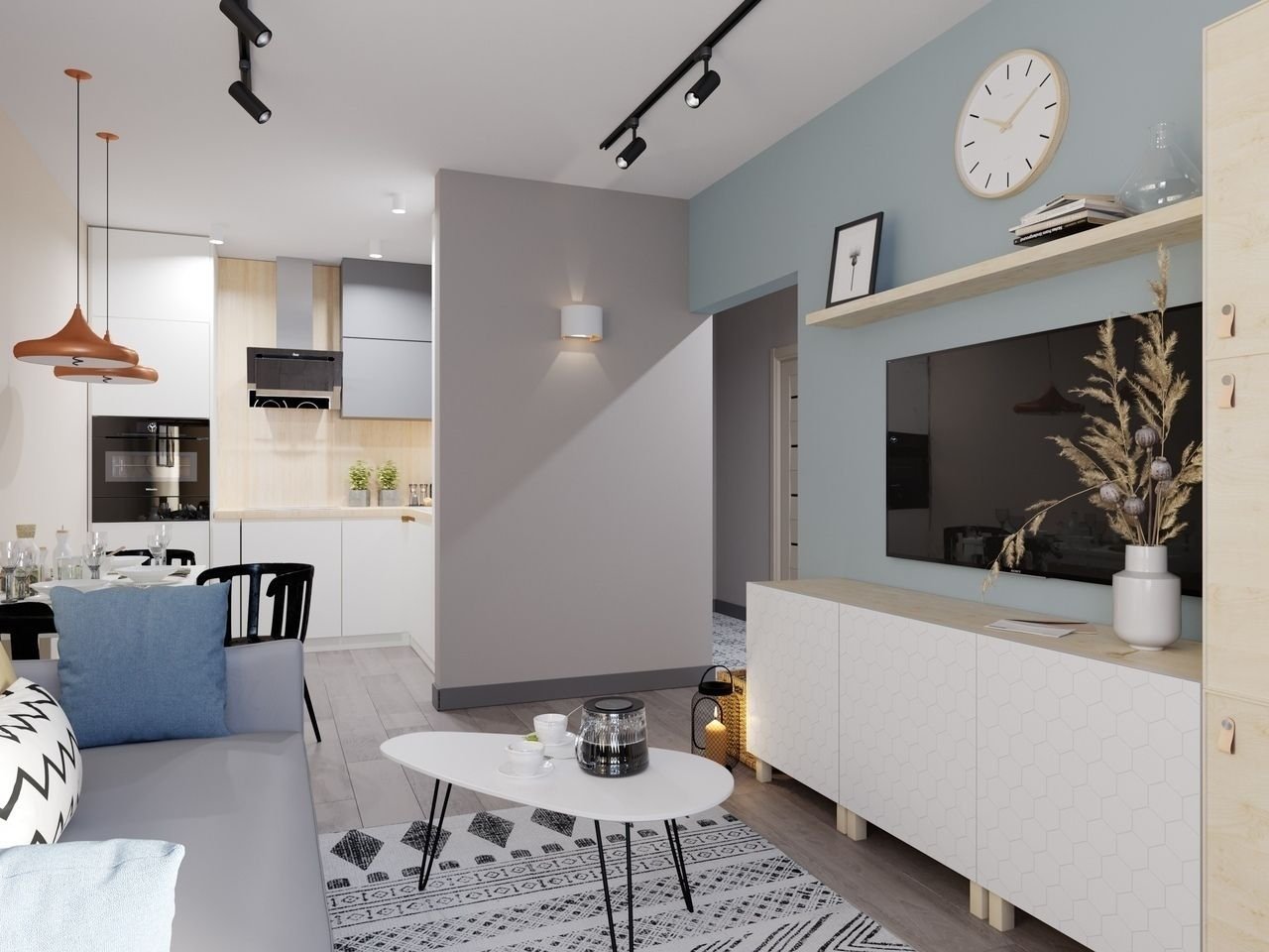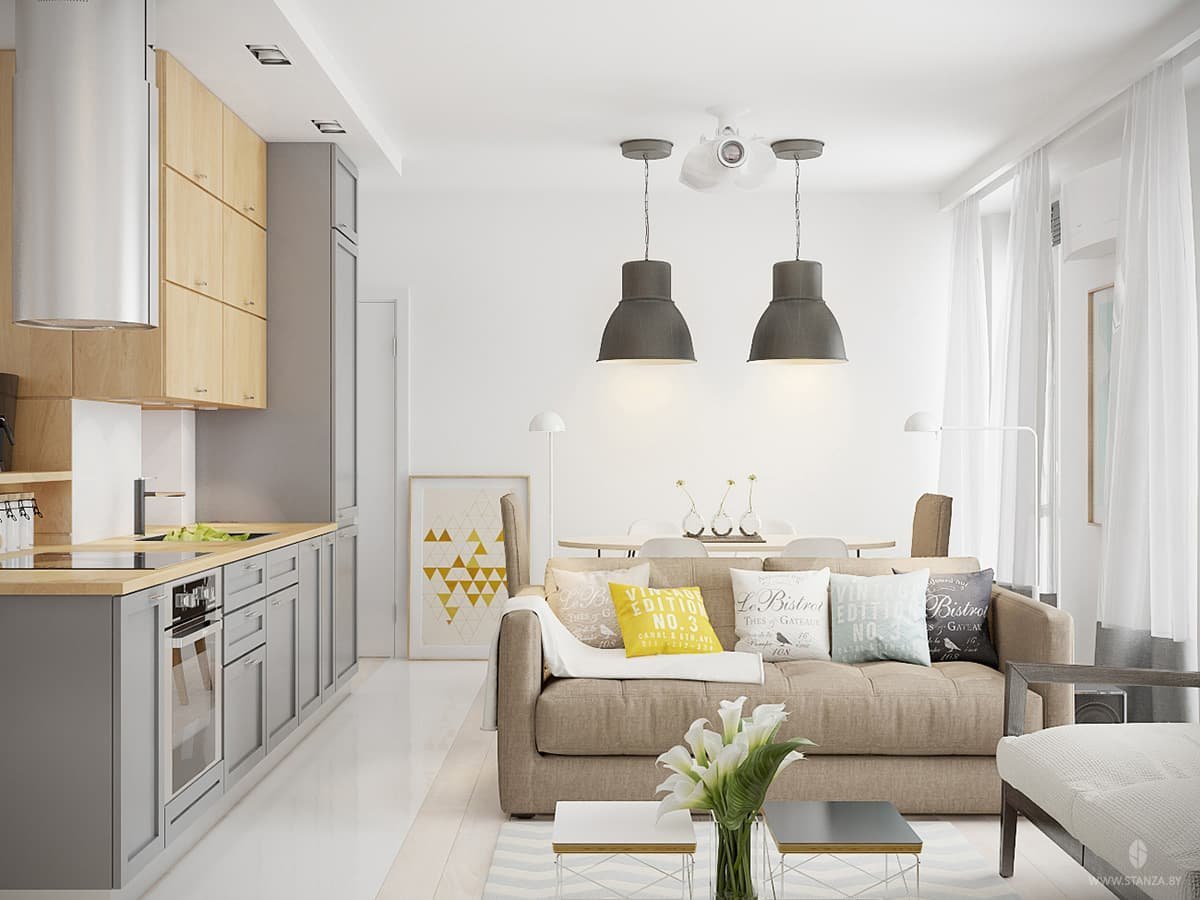 Маленькая кухня-гостиная в скандинавском стиле