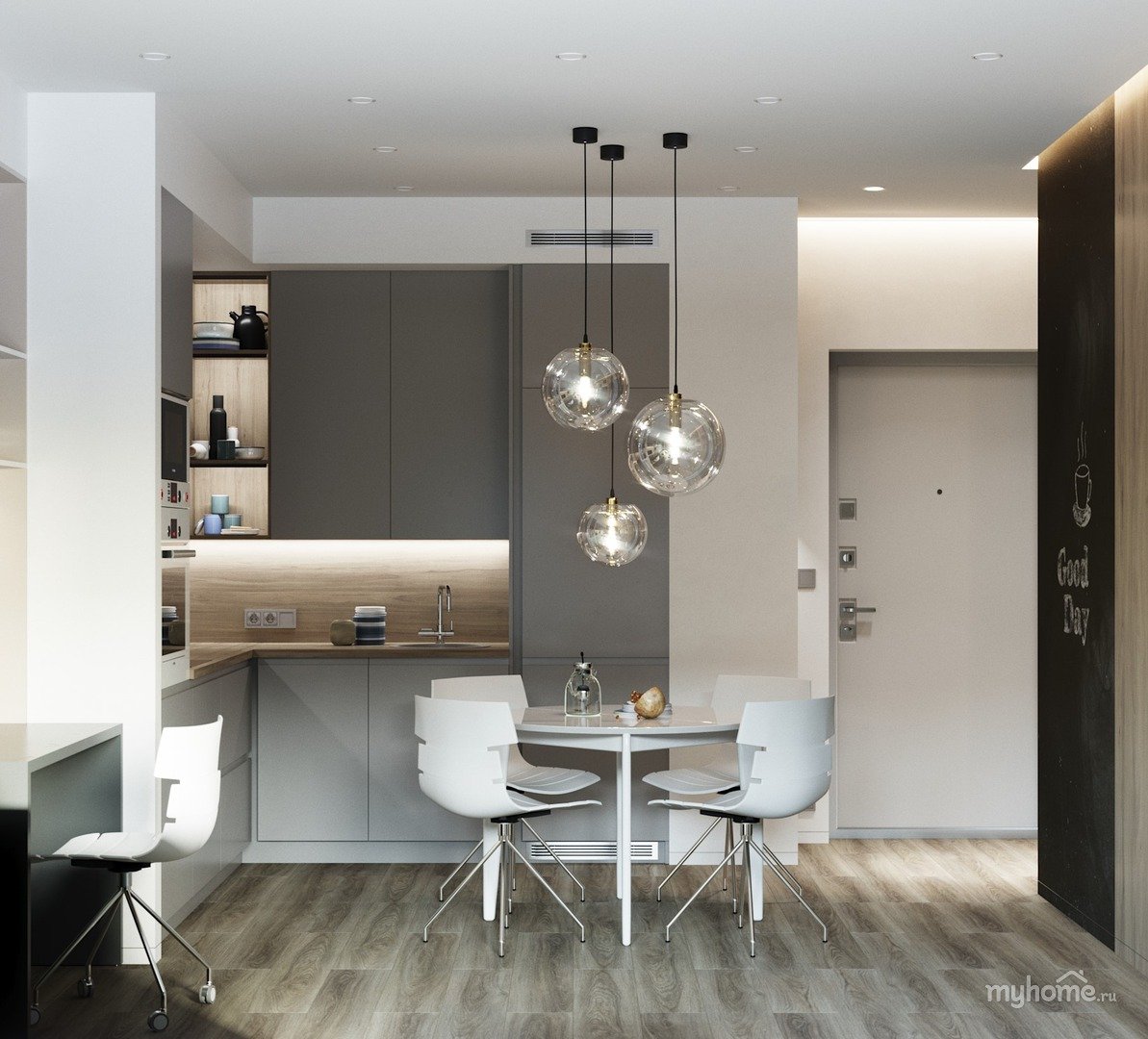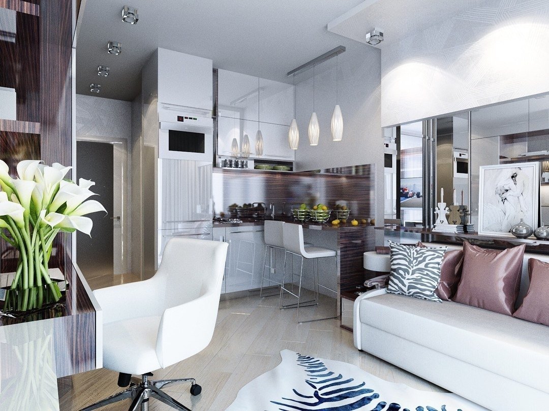 Зонирование кухни в студии 30 кв.м