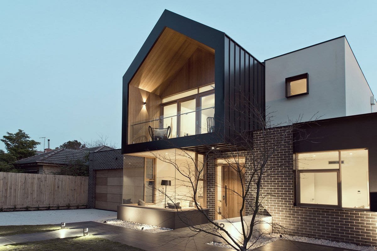 Дом с треугольной крышей и панорамными окнами
