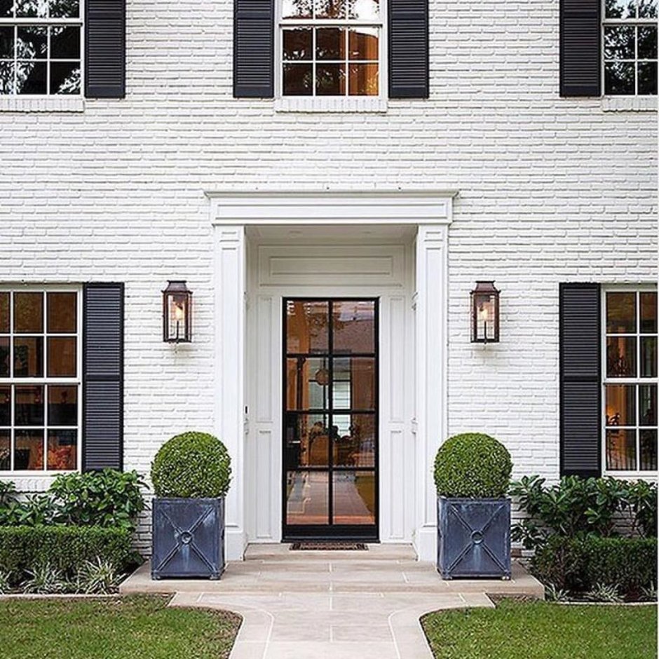 Дом черный с белыми ставнями