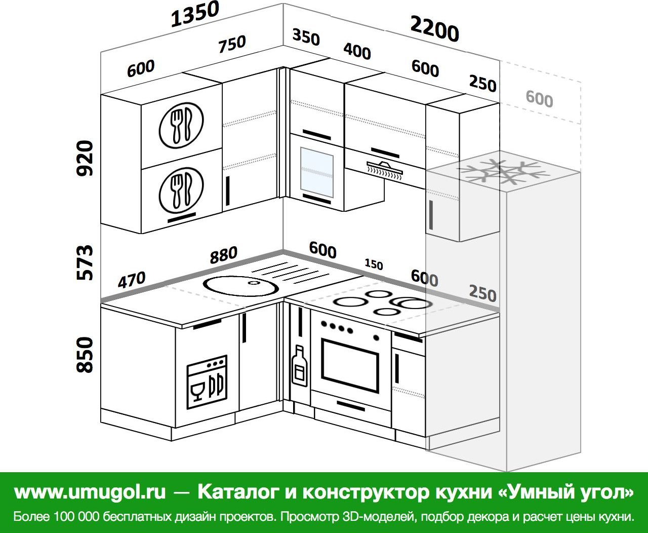 Схема угловой кухни с посудомоечной машиной