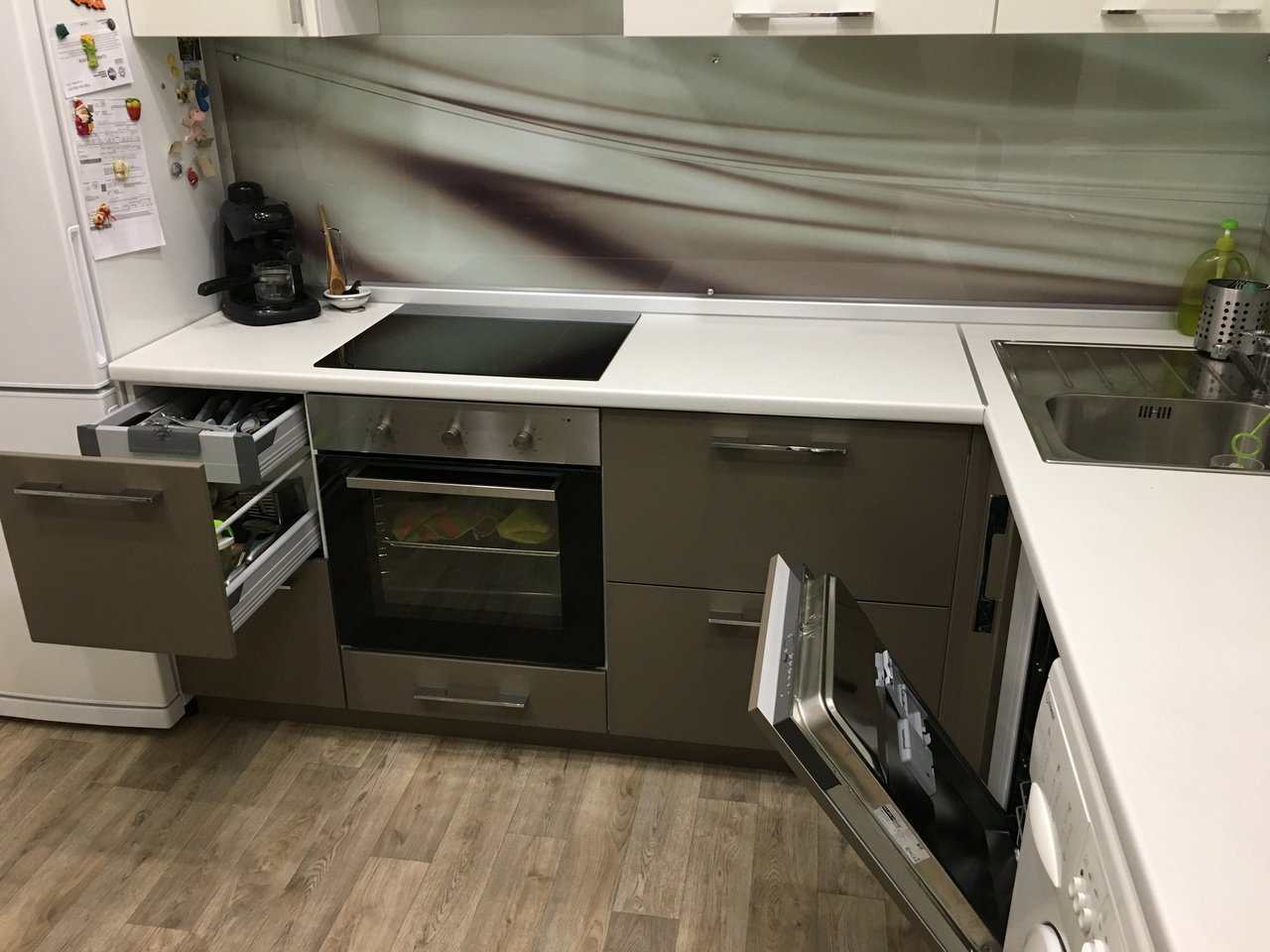 Кухонный гарнитур со стиральной машиной и посудомоечной машиной