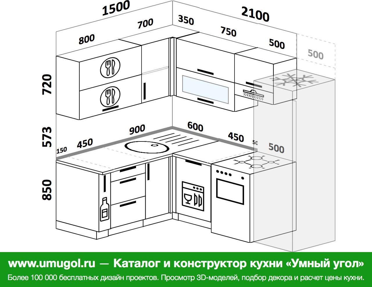 Угловые кухни 2100