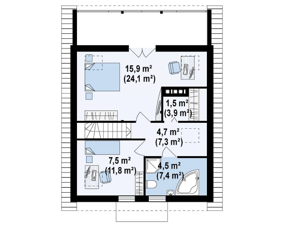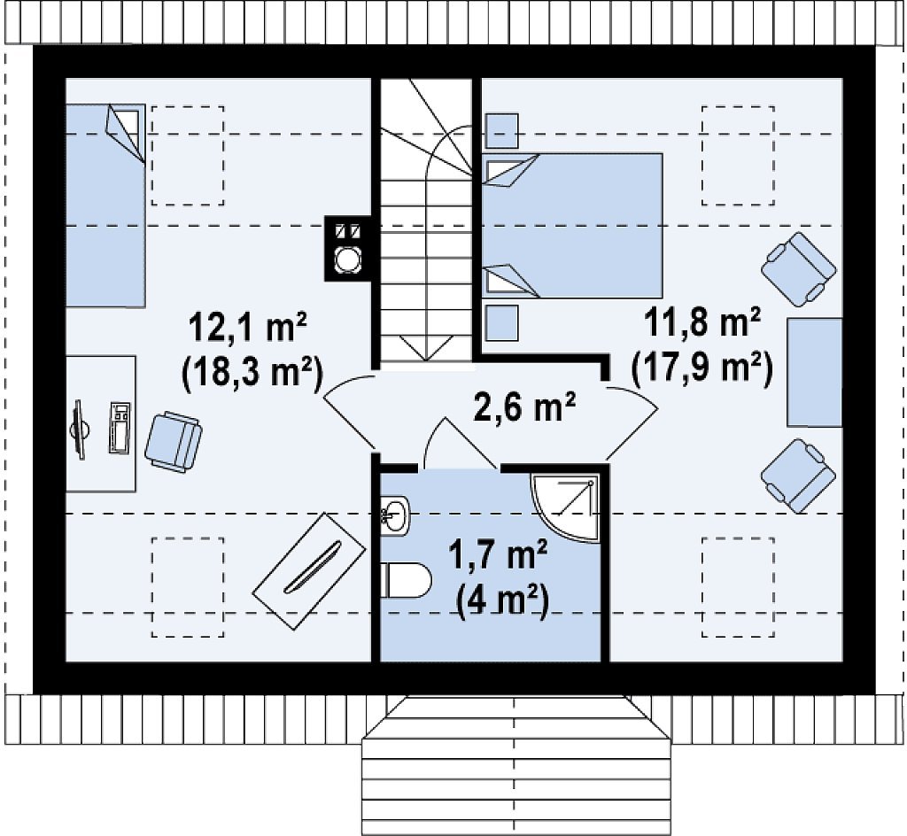 Планировка мансардного этажа с двускатной крышей