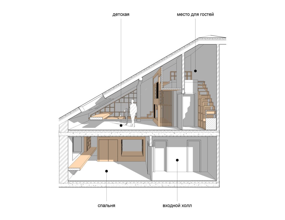 Планировка комнат в мансарде с двухскатной крышей