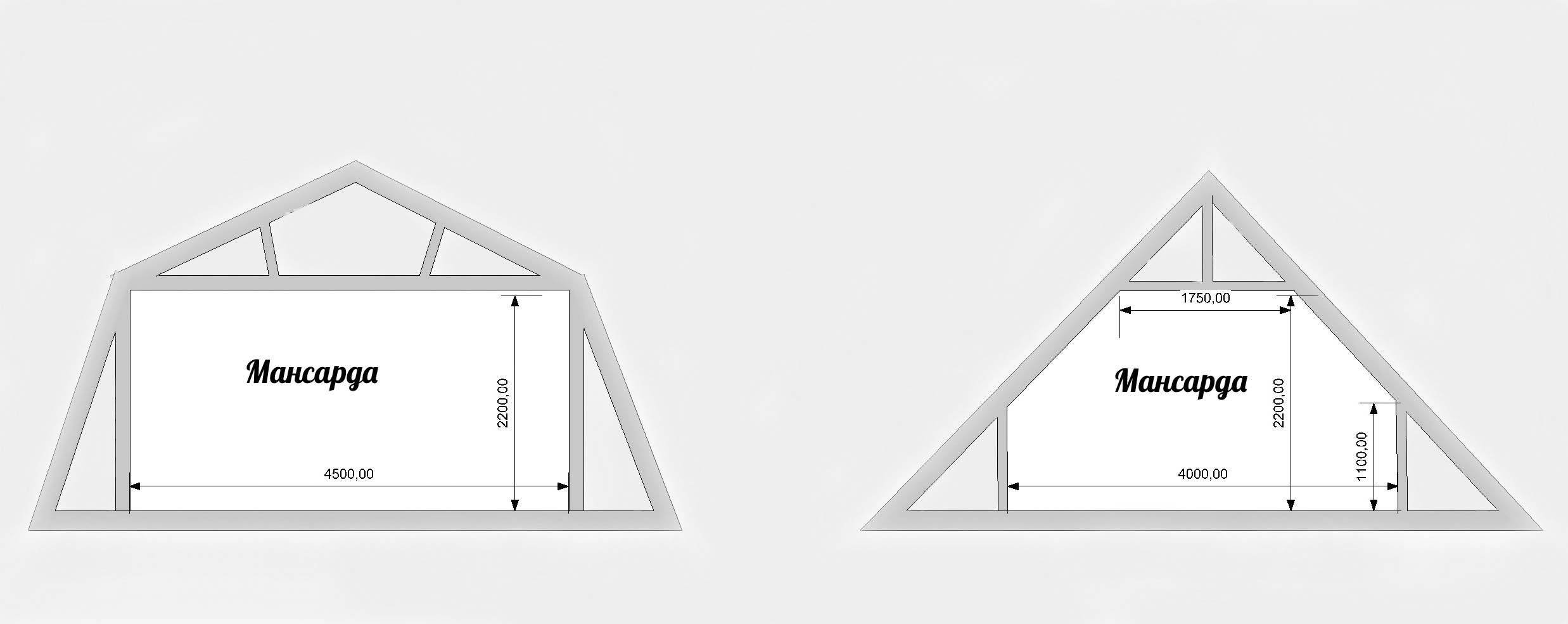 Схема мансардной двухскатной крыши