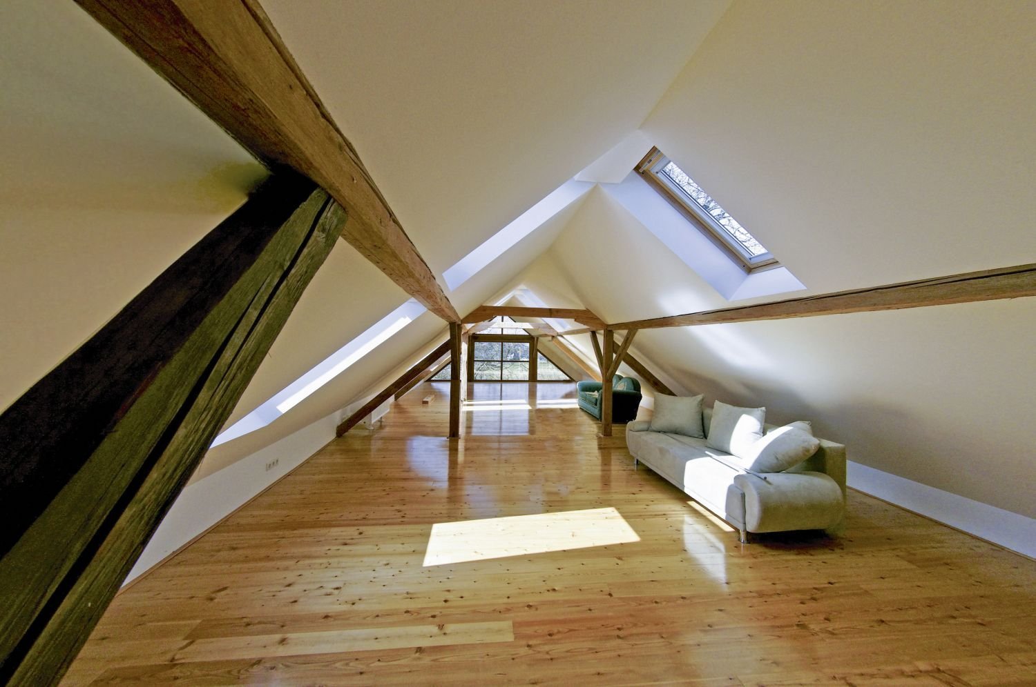 Интерьер мансарды с двускатной крышей