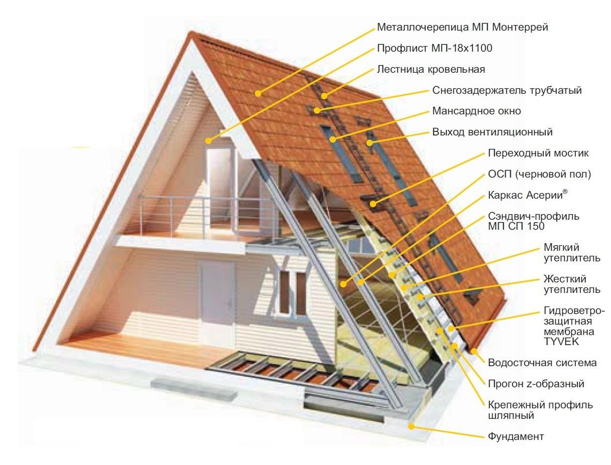 Двухскатная крыша с мансардой