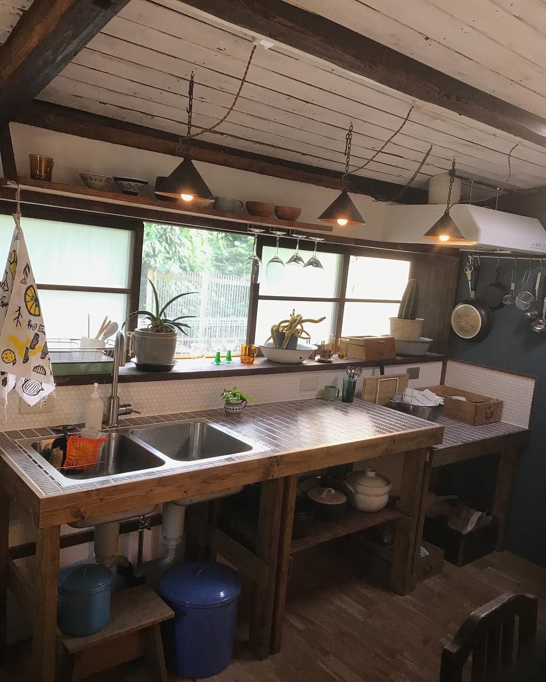 Деревенский стиль кухни с открытыми полками