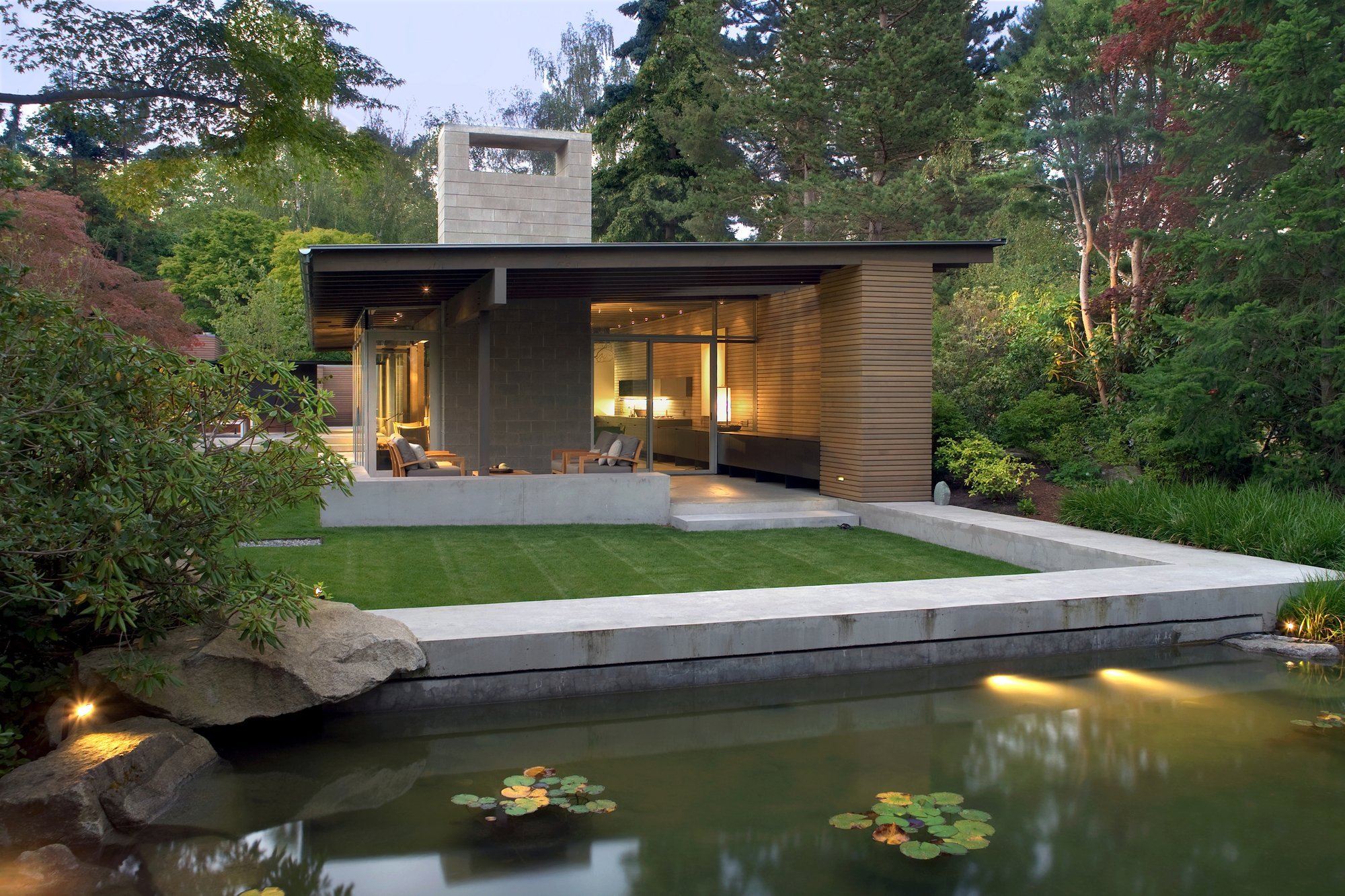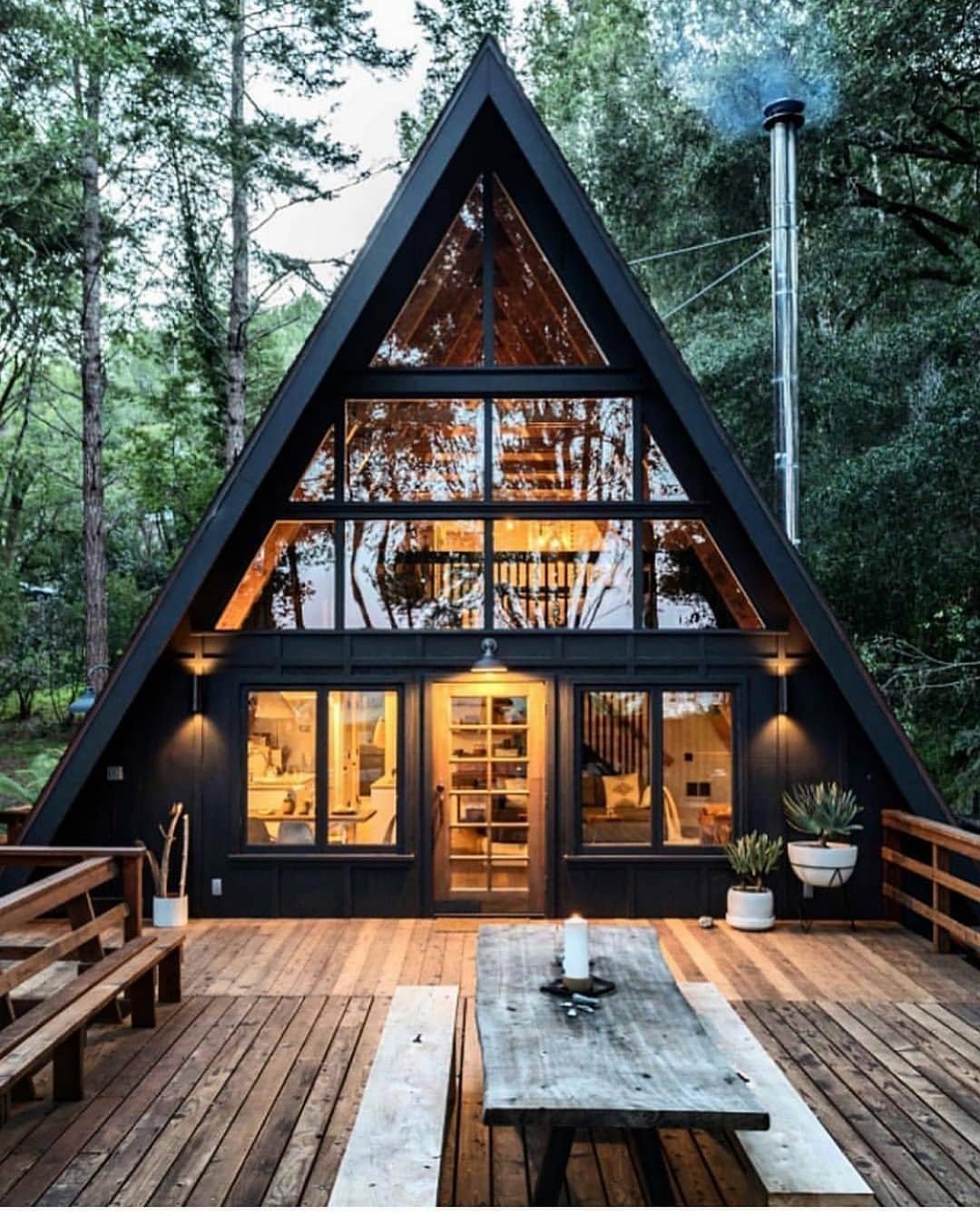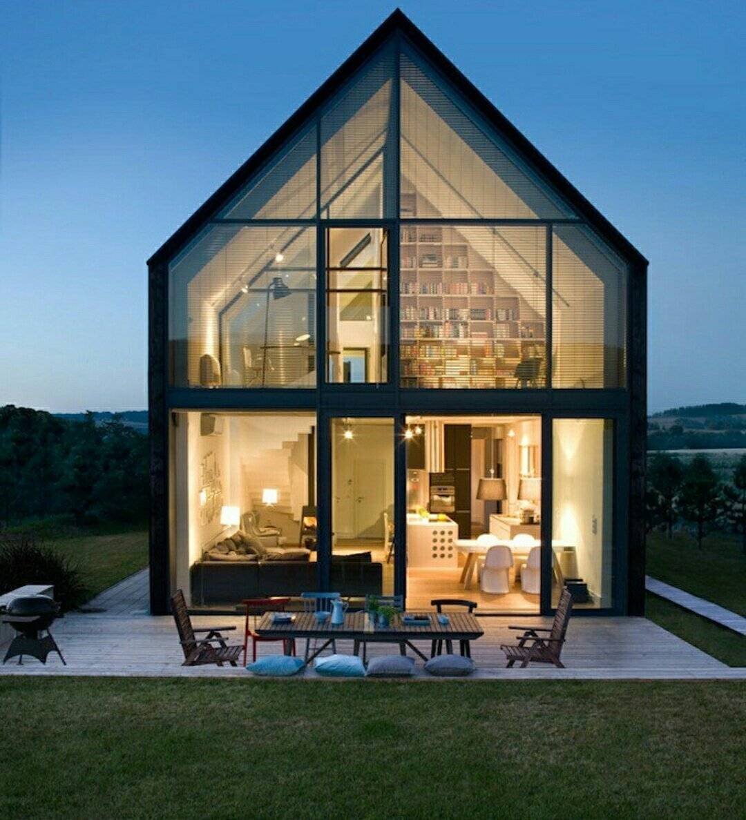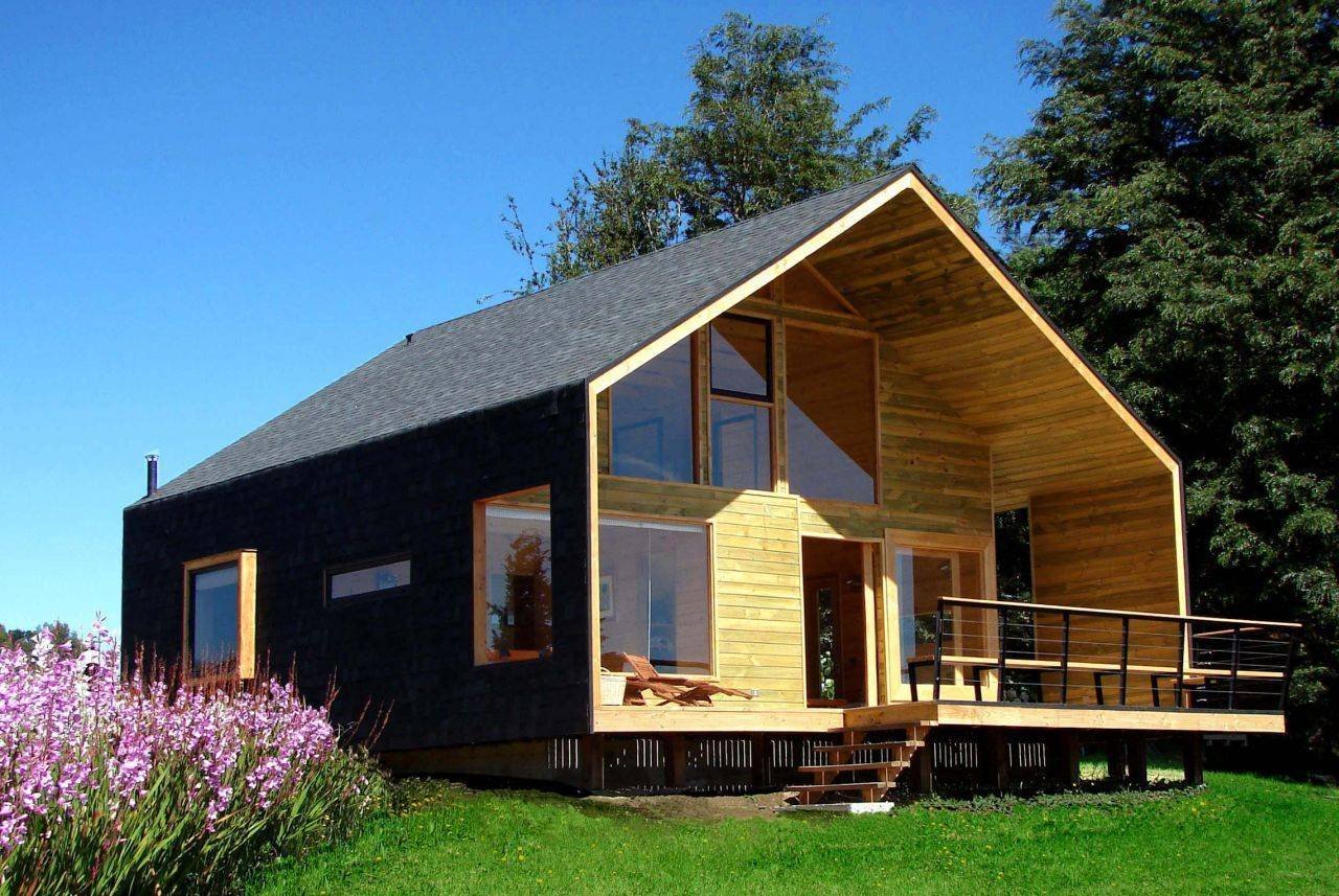 Небольшой домик с панорамными окнами