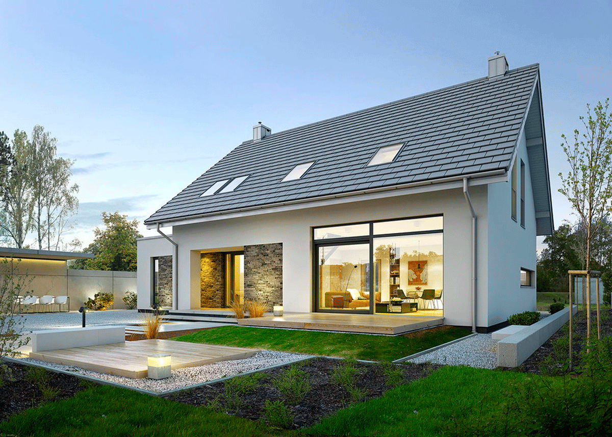 Дом с мансардой и панорамными окнами