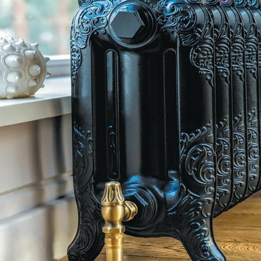 Черный чугунный радиатор в интерьере