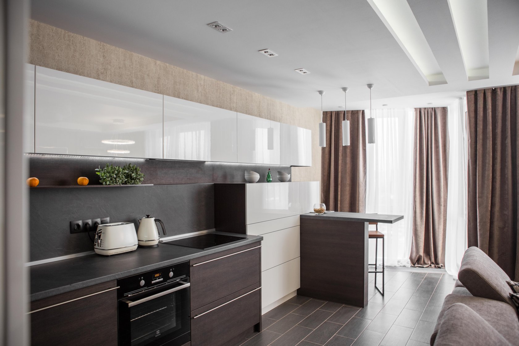 Гостиная с кухней кофейные оттенки