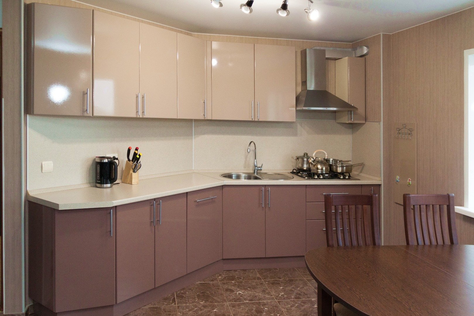 Кухня цвета кофе с молоком
