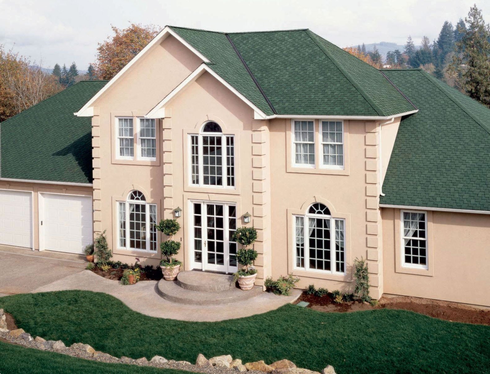 Цвет фасада к зеленой крыше