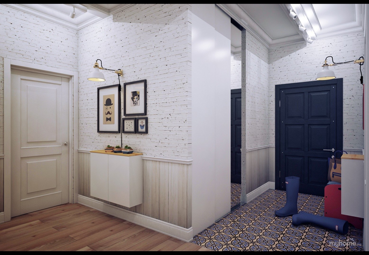 Прихожая в стиле кирпича белого