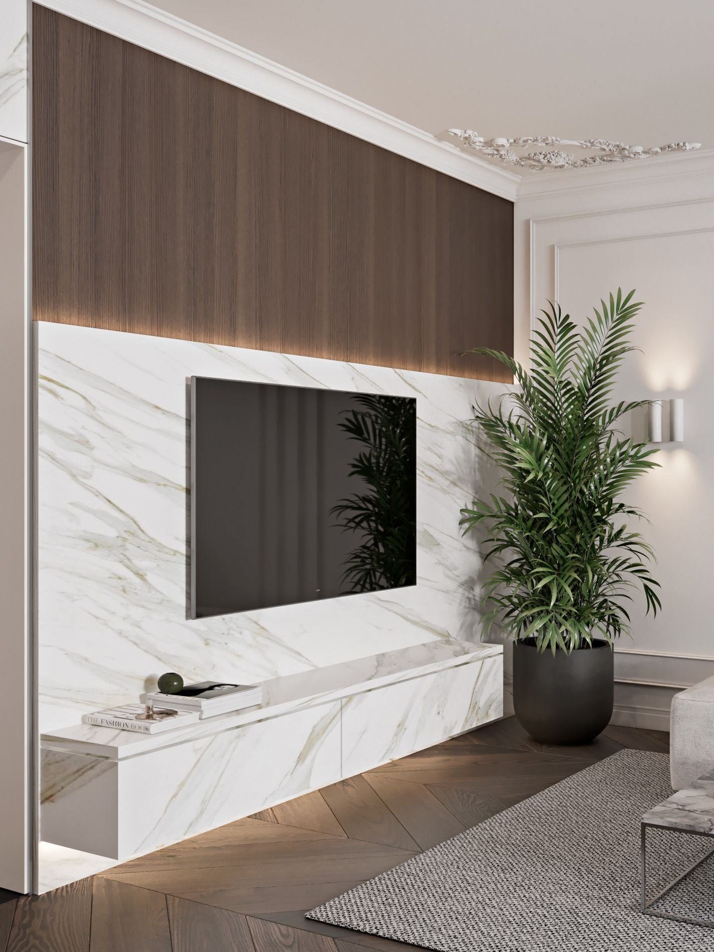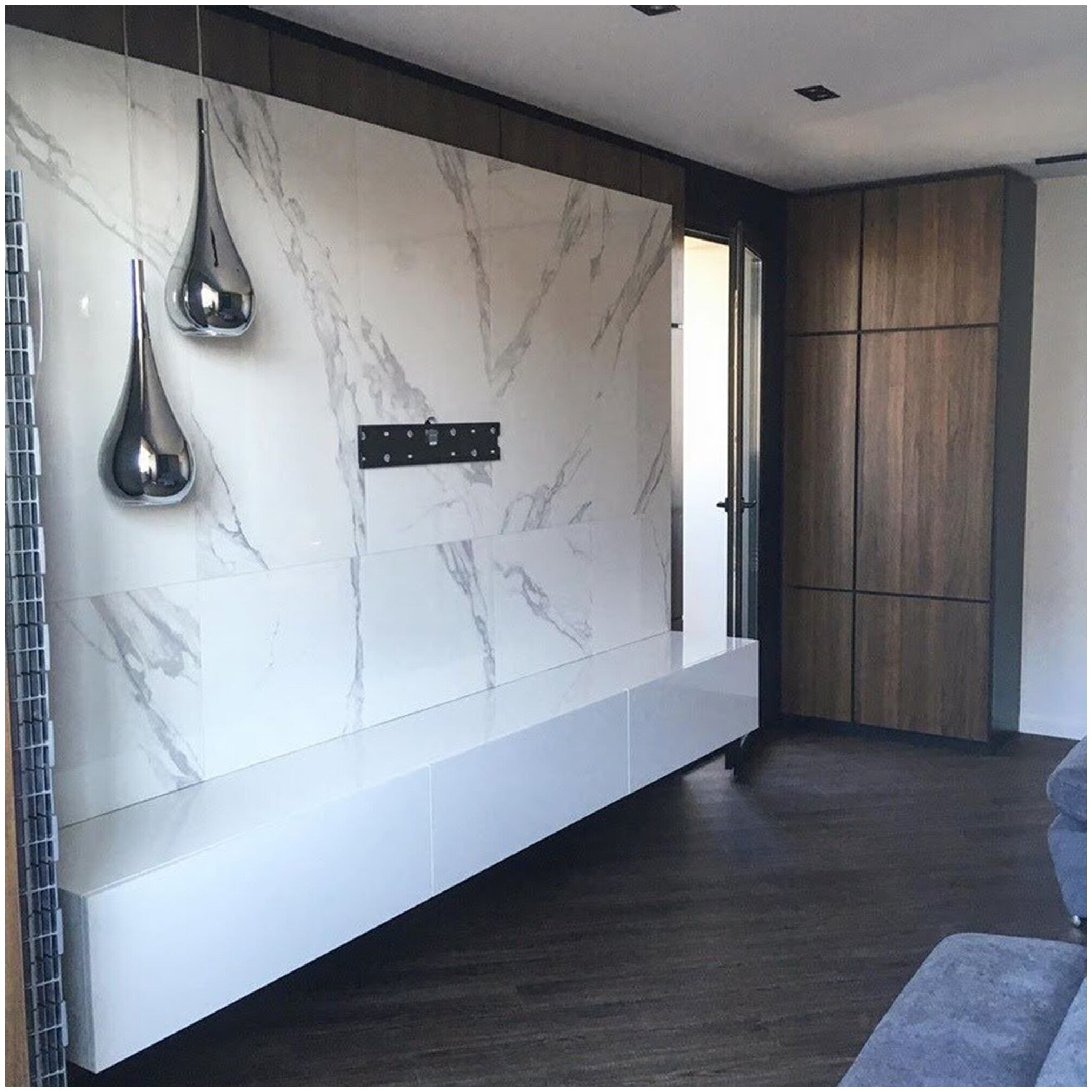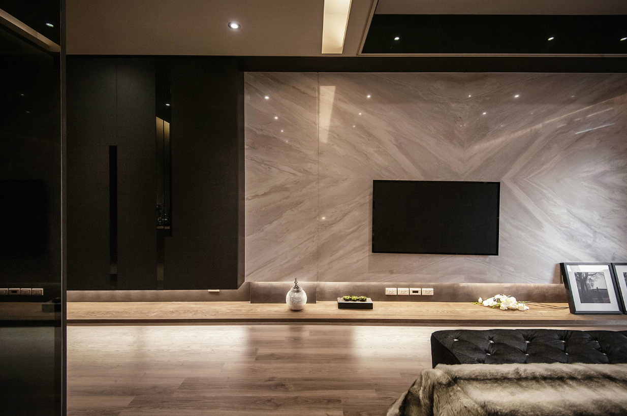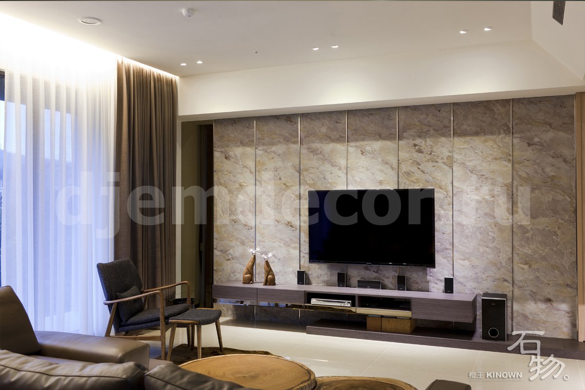 ТВ зона с мраморной стеной