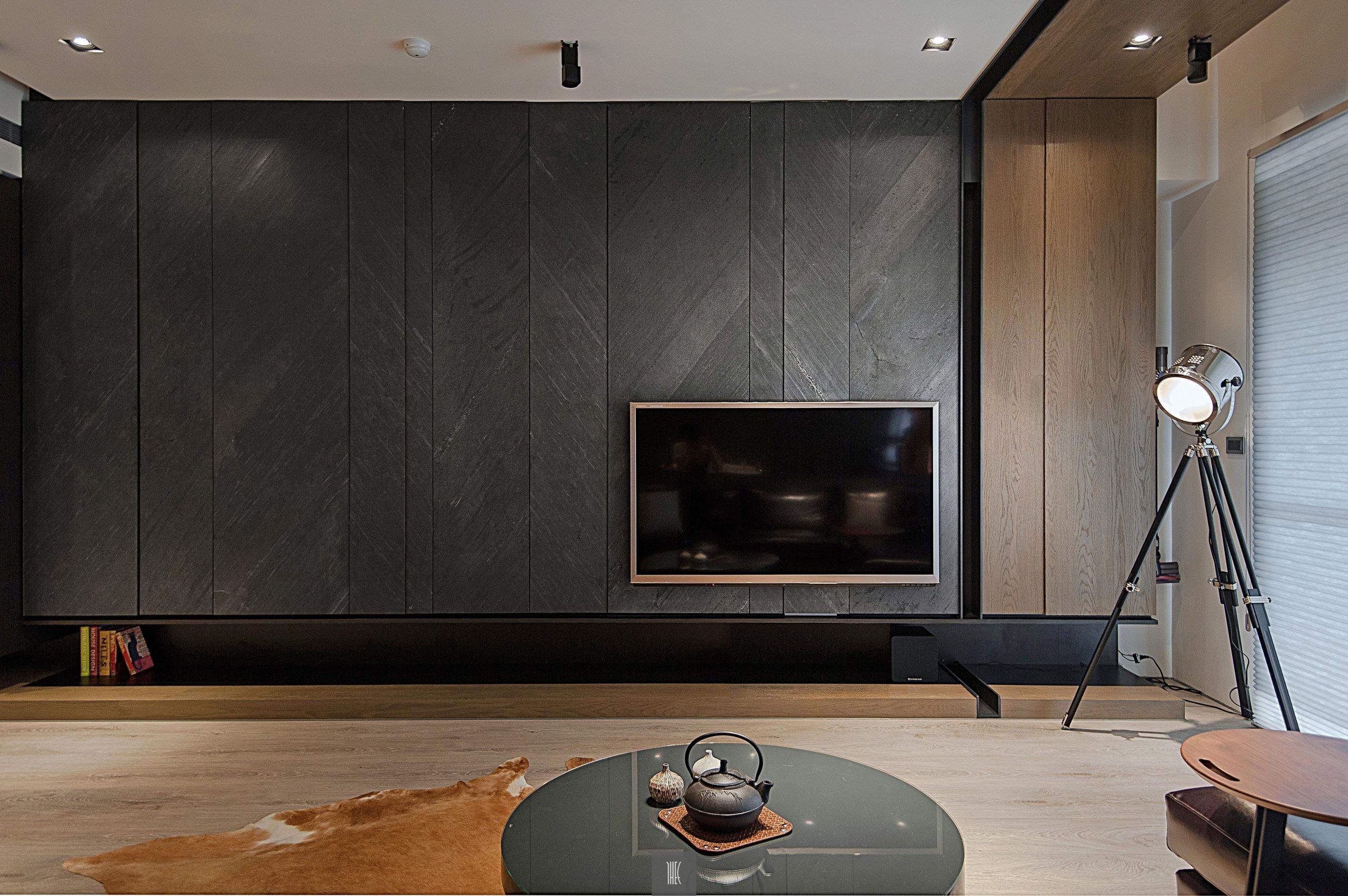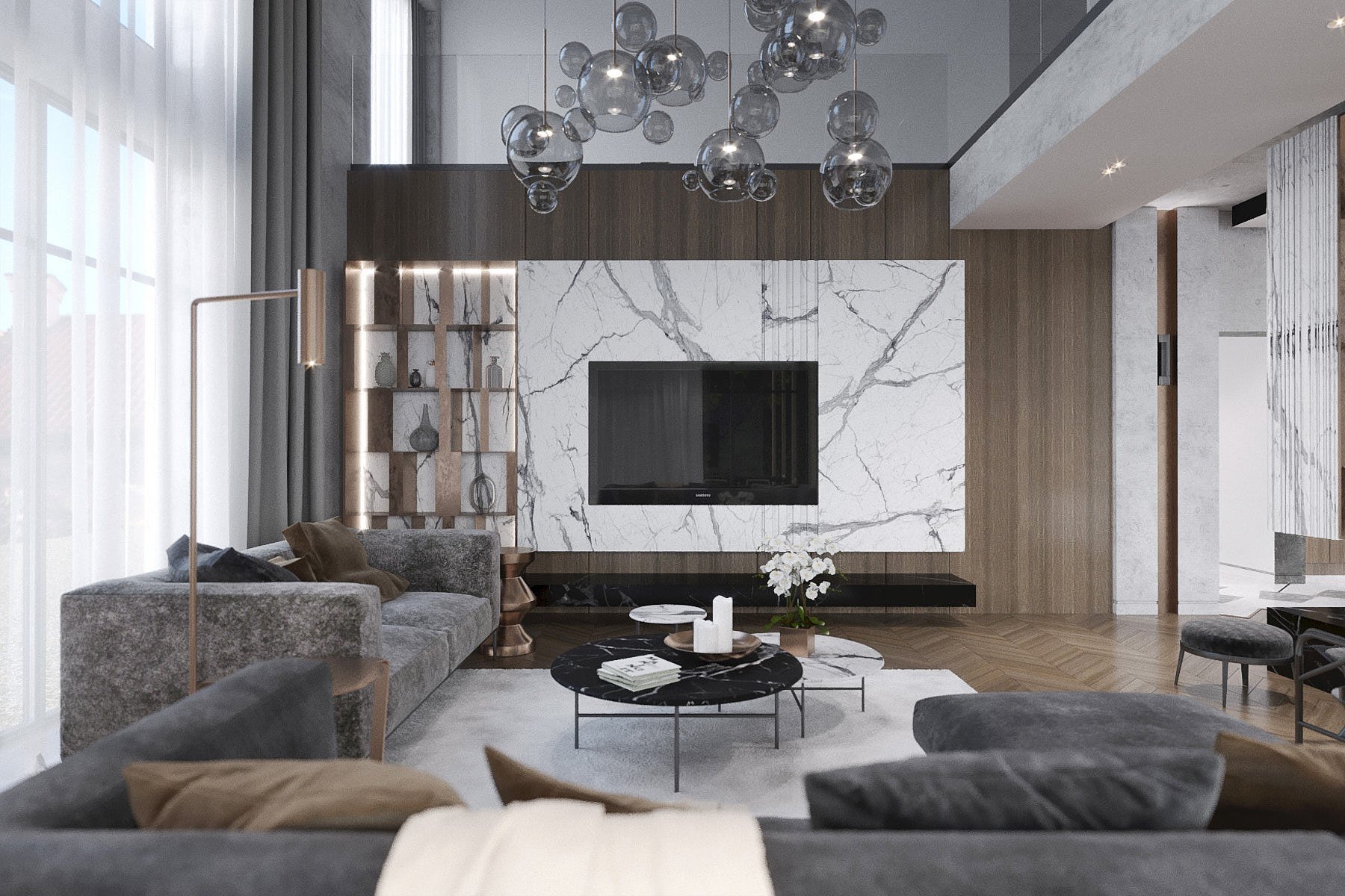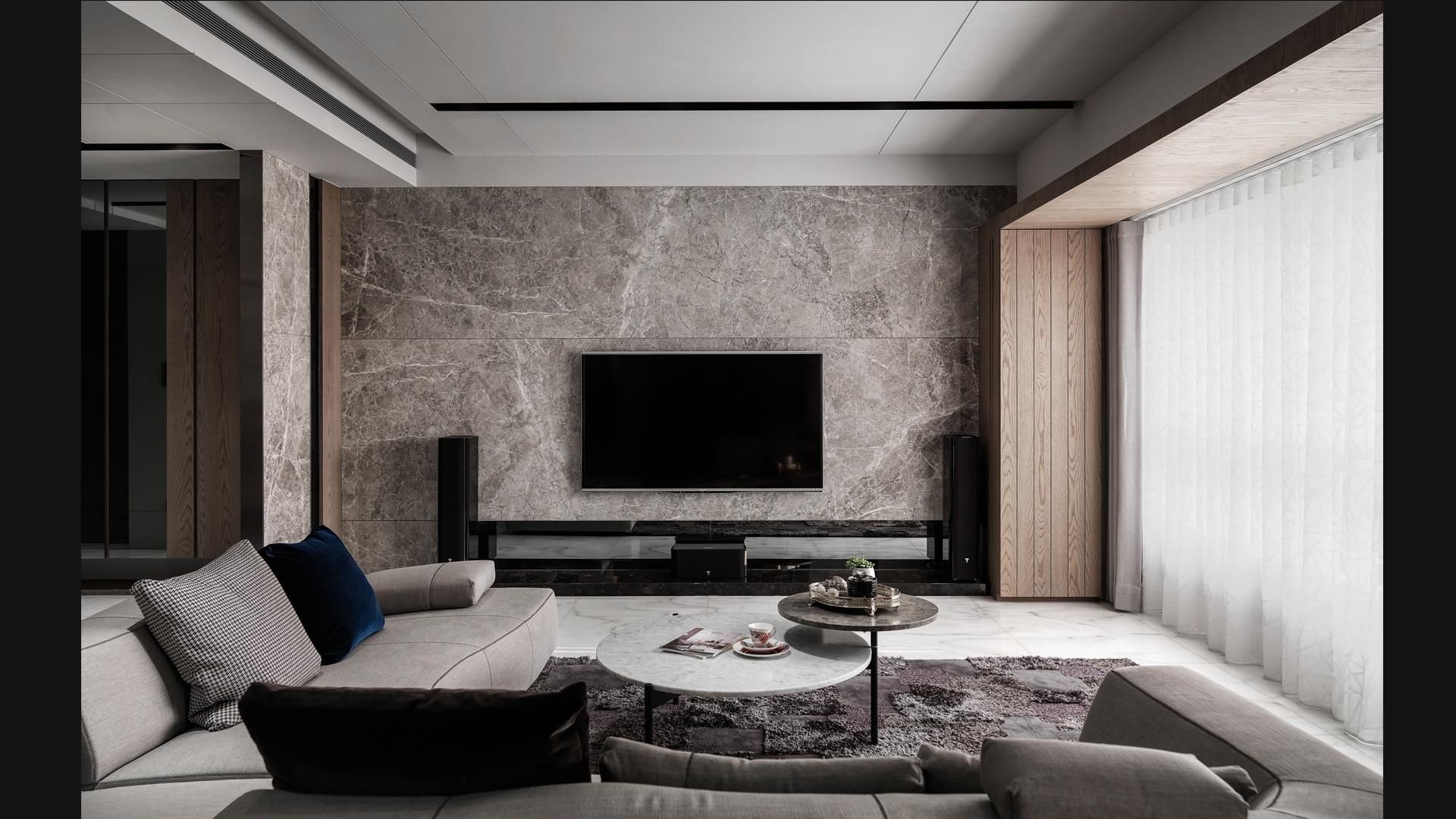 ТВ зона с мраморной стеной