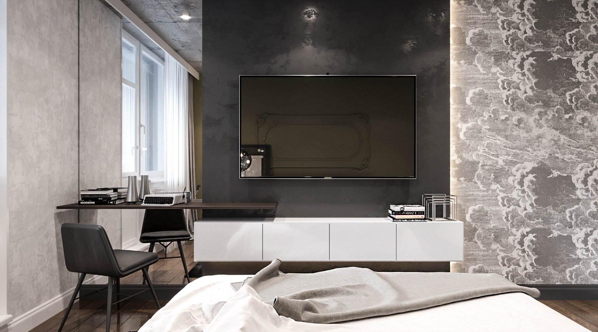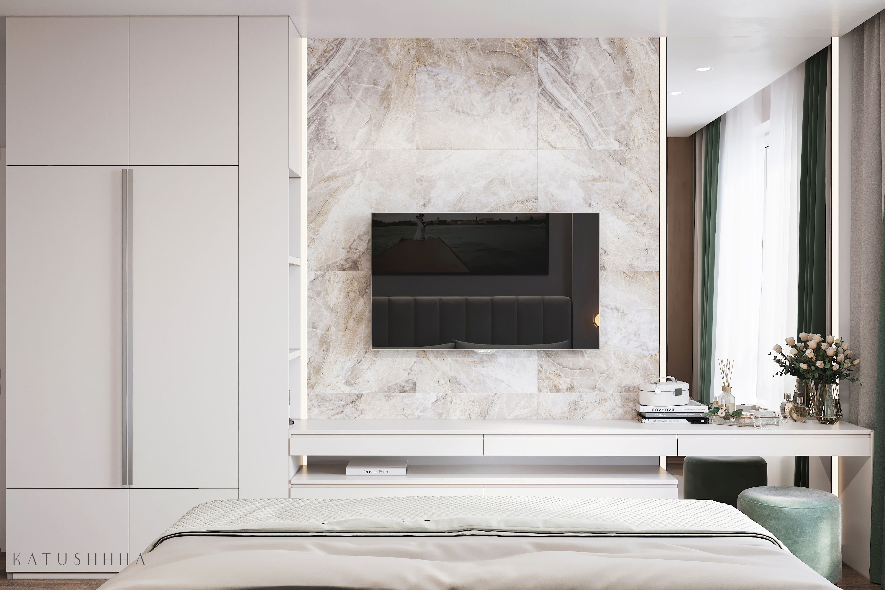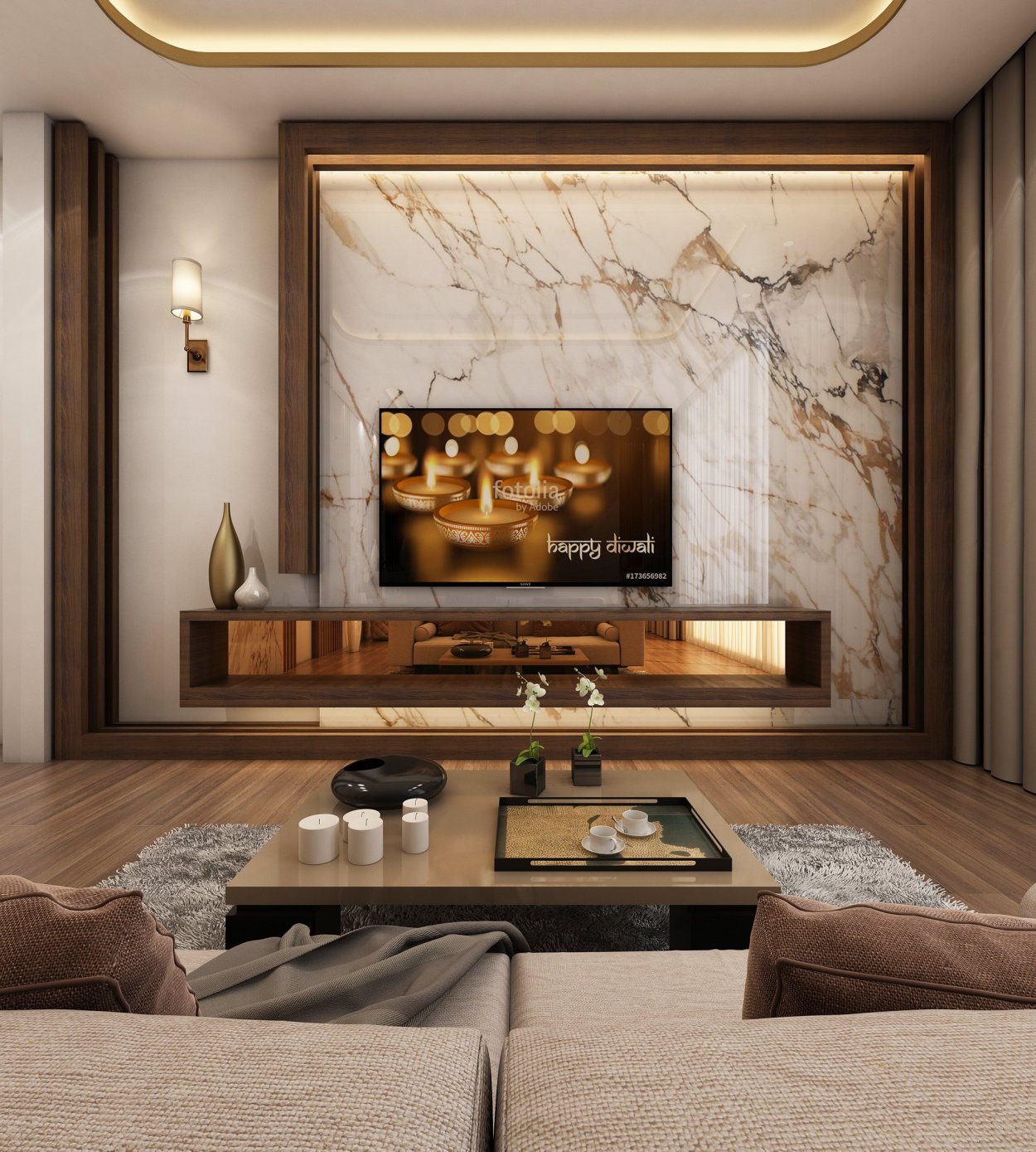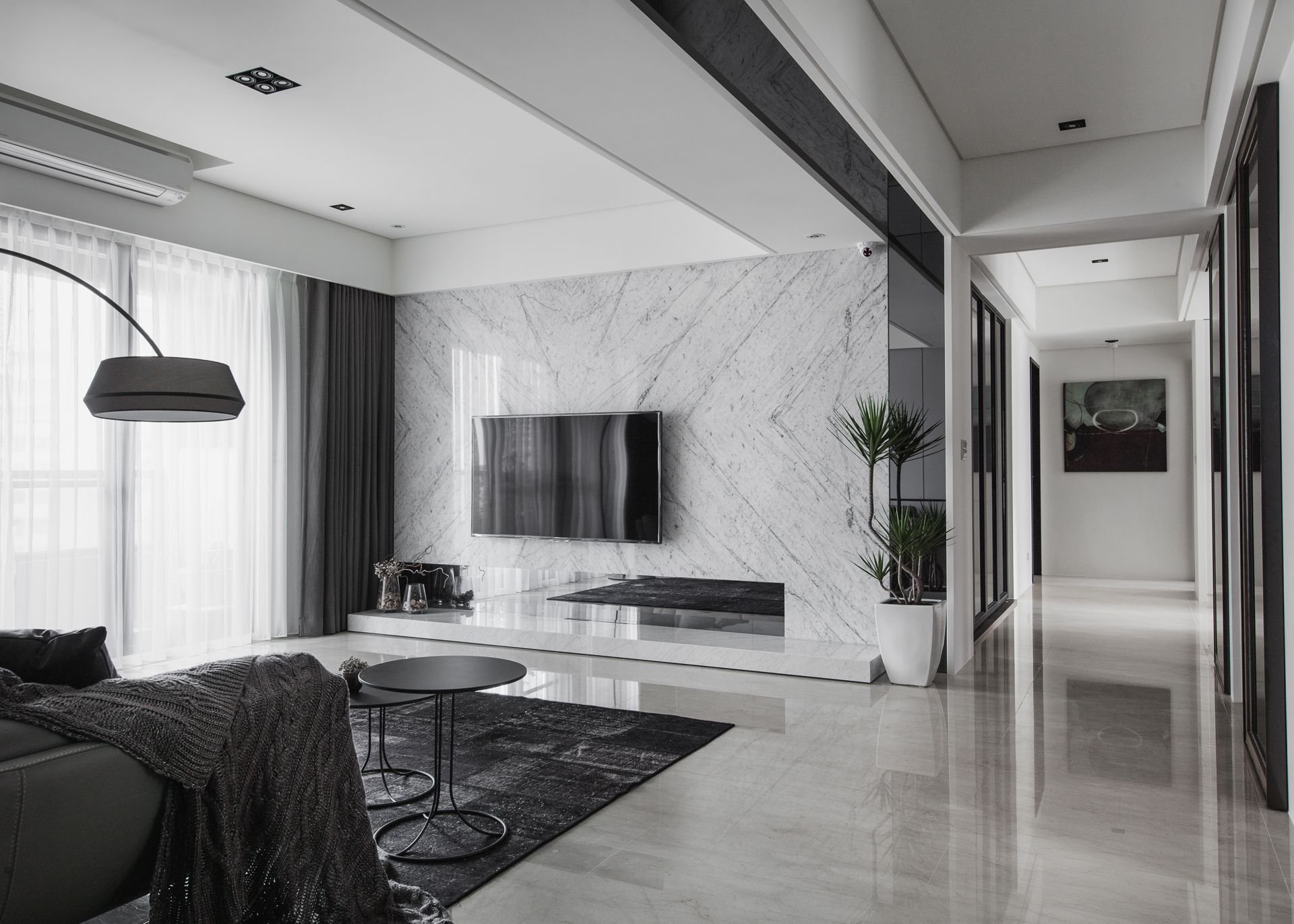 ТВ зона с мраморной стеной
