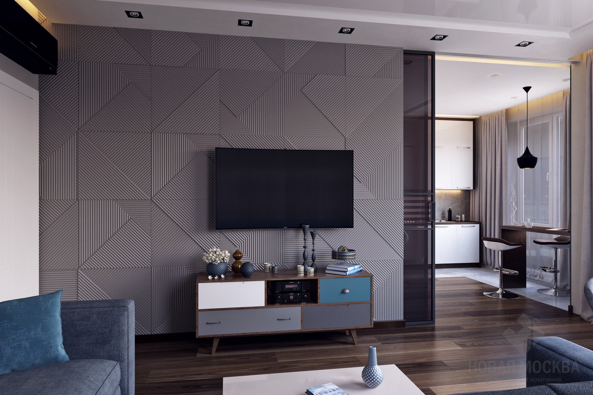 Гостиная с 3д панелями