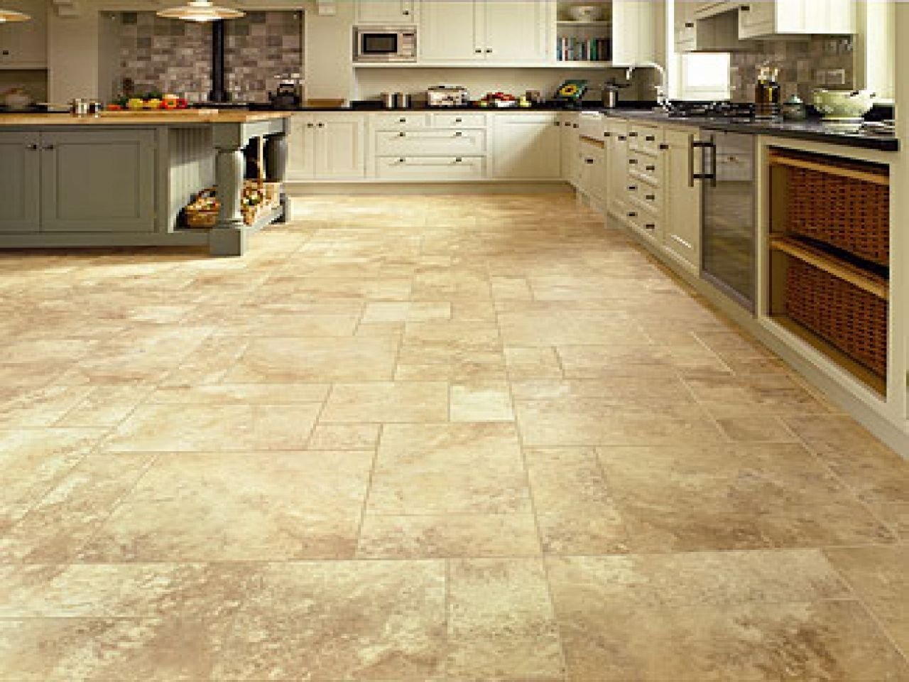 Плитка на кухне крупная напольная