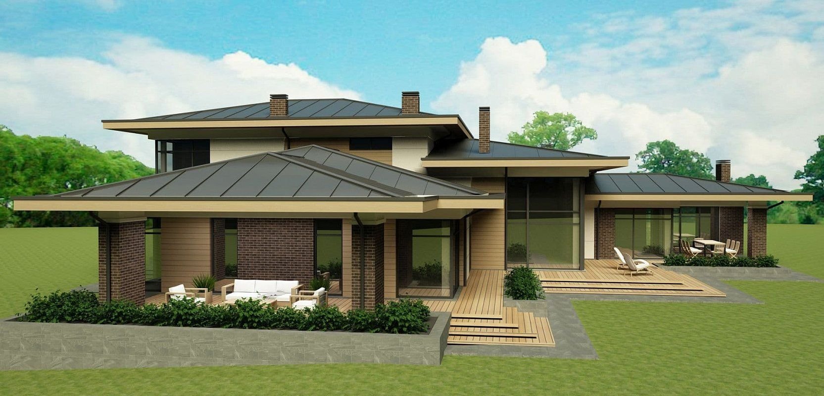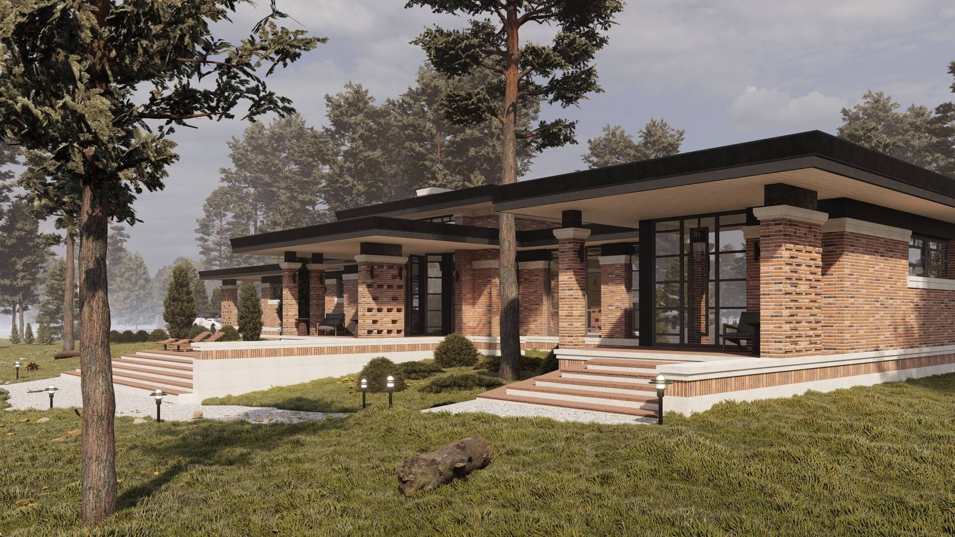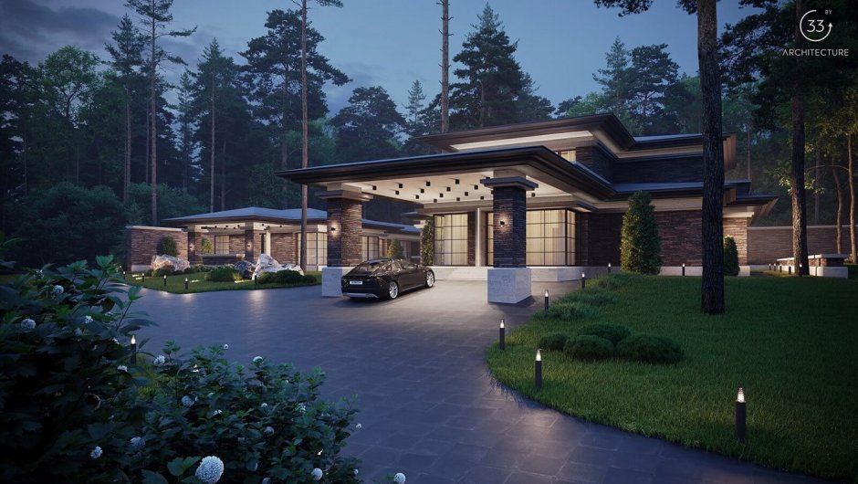Одноэтажный дом в стиле Райта