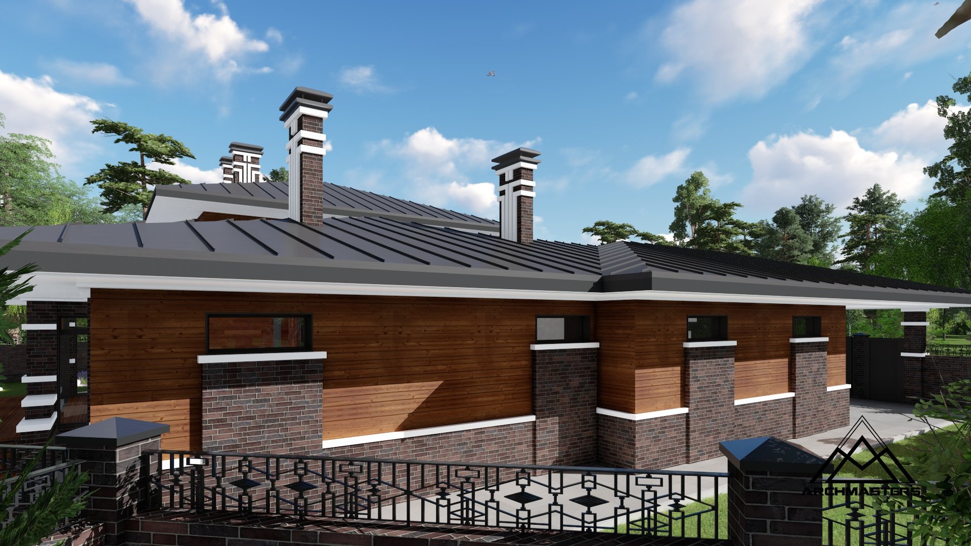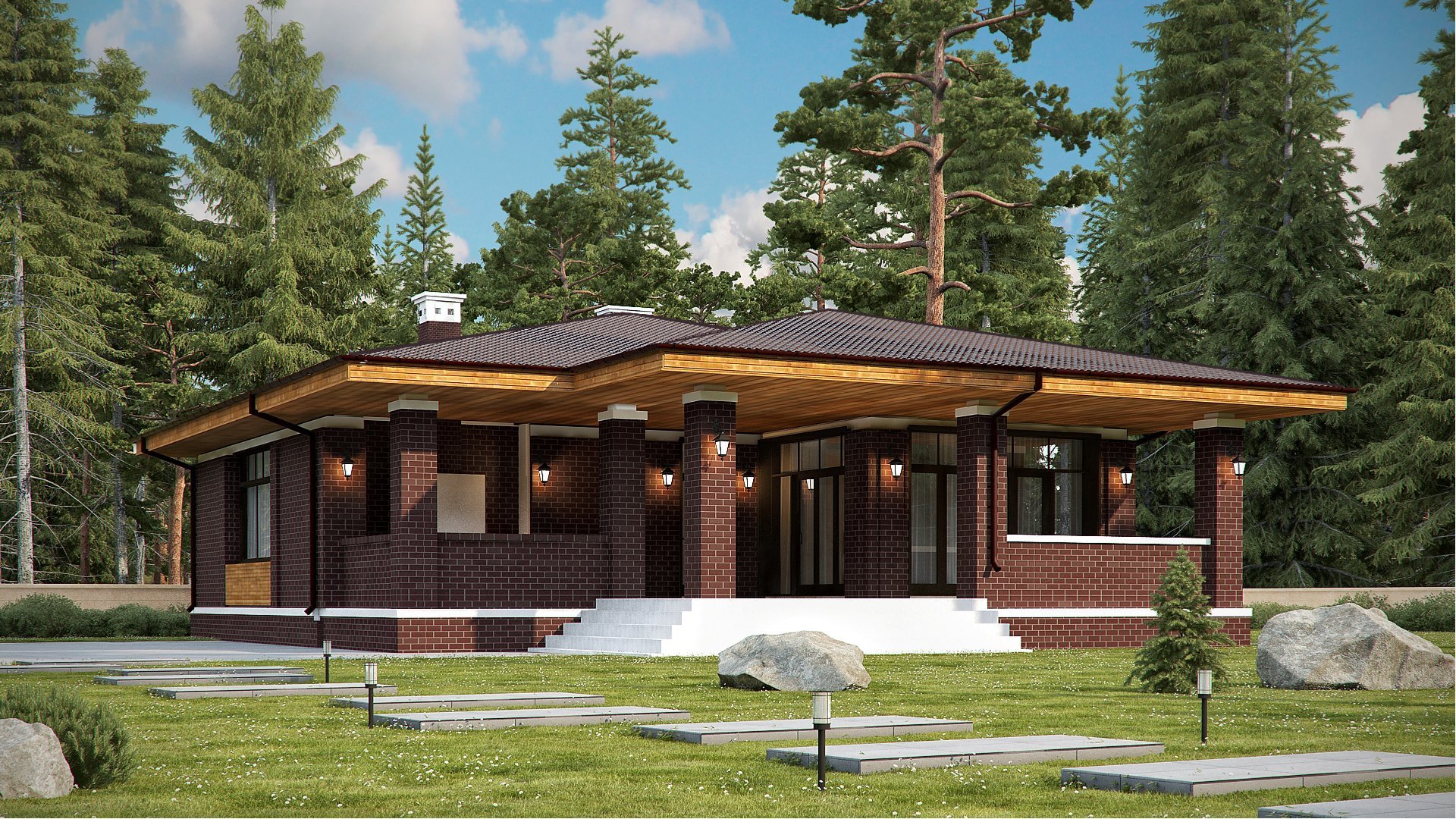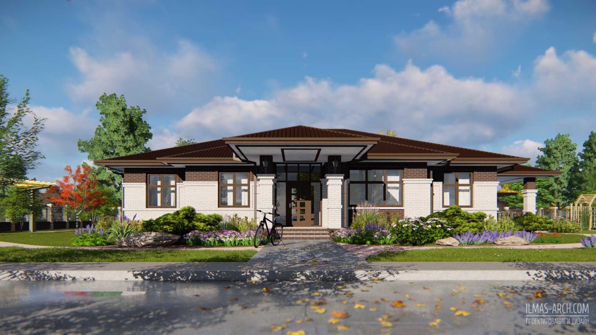 Одноэтажный дом в стиле Райта