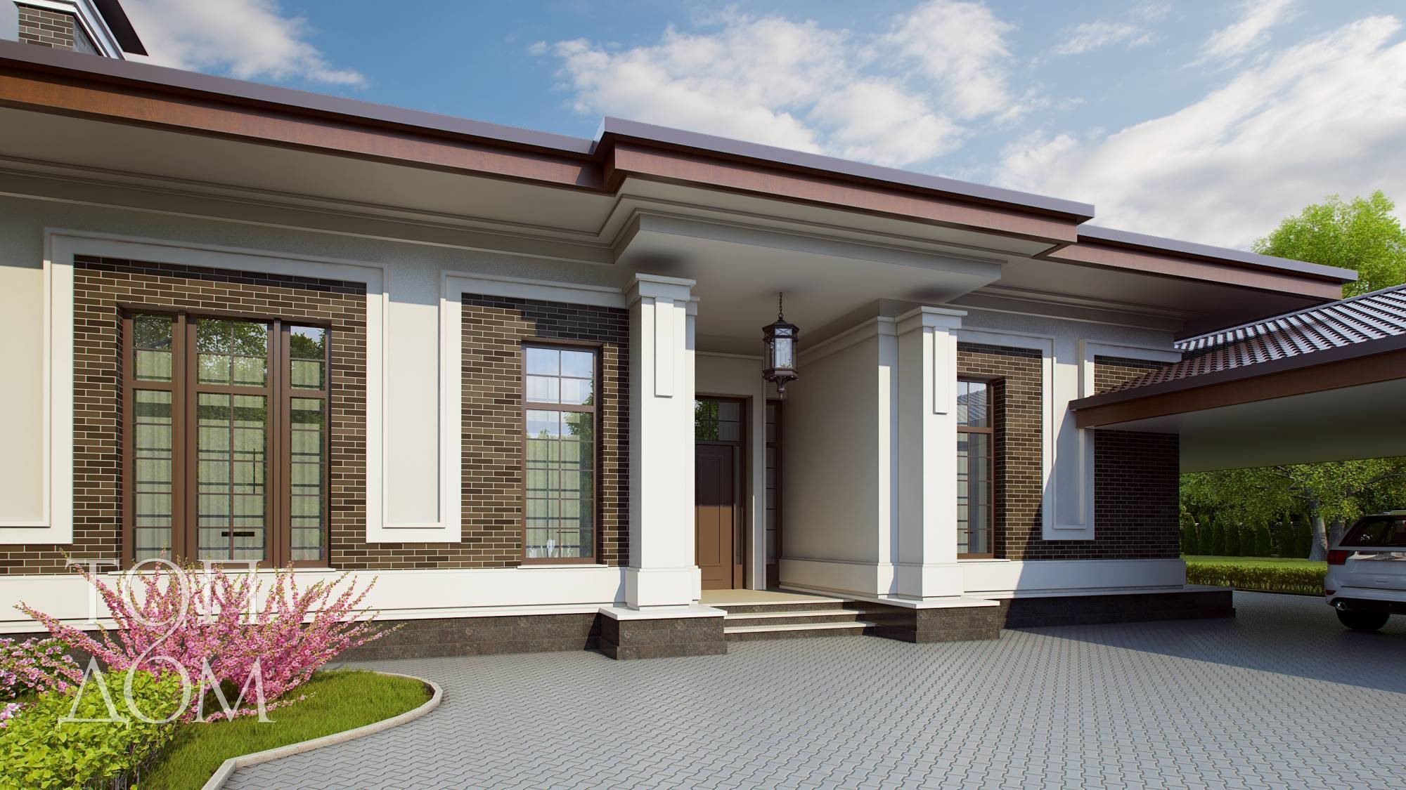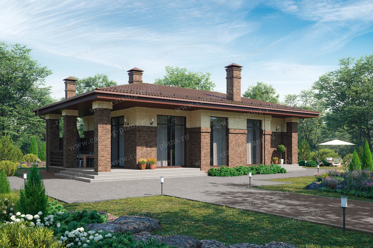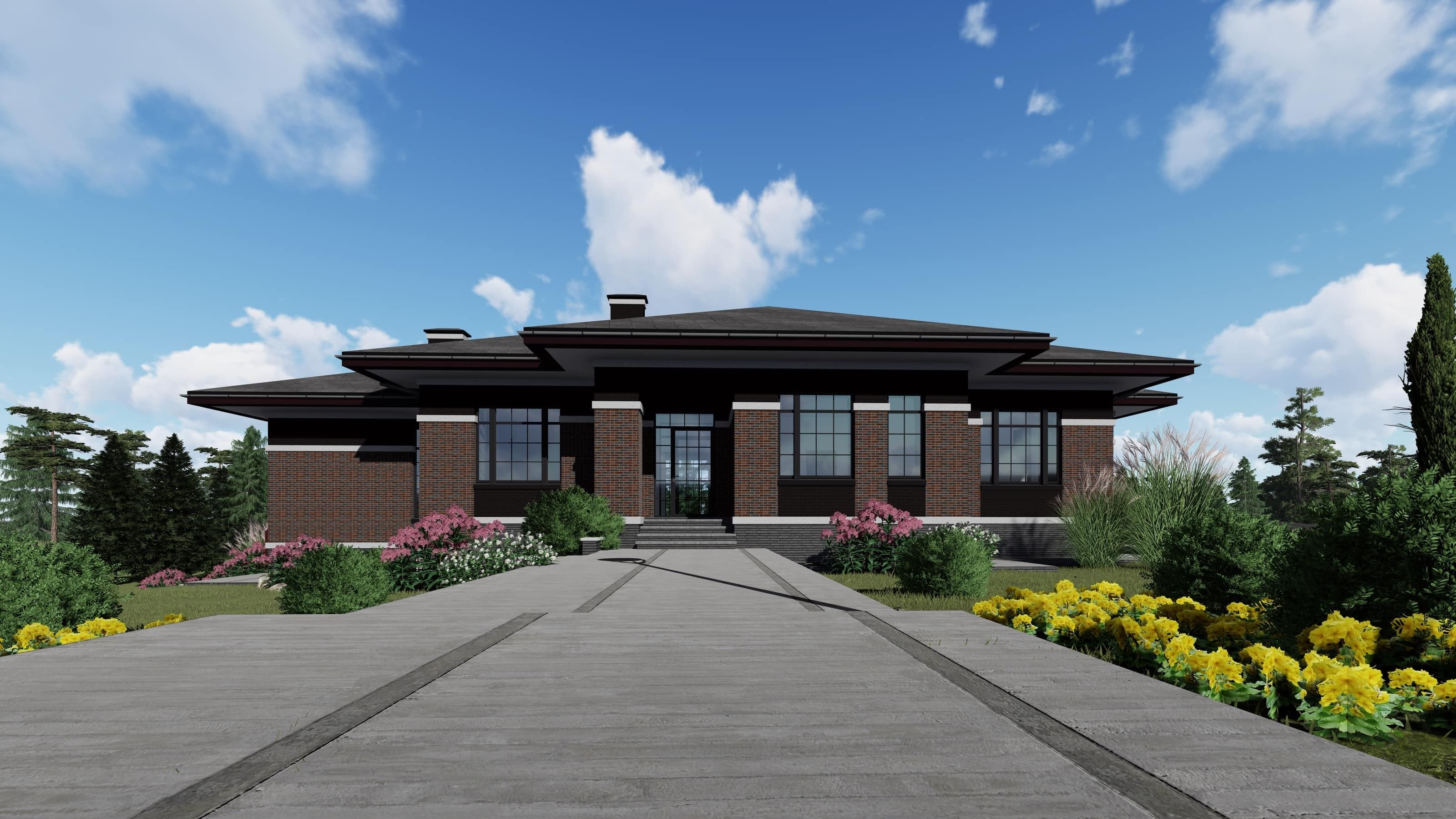 Одноэтажный кирпичный дом в стиле Райта