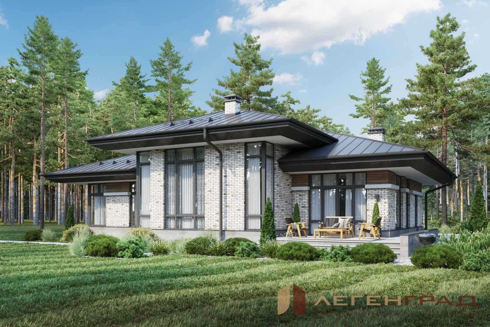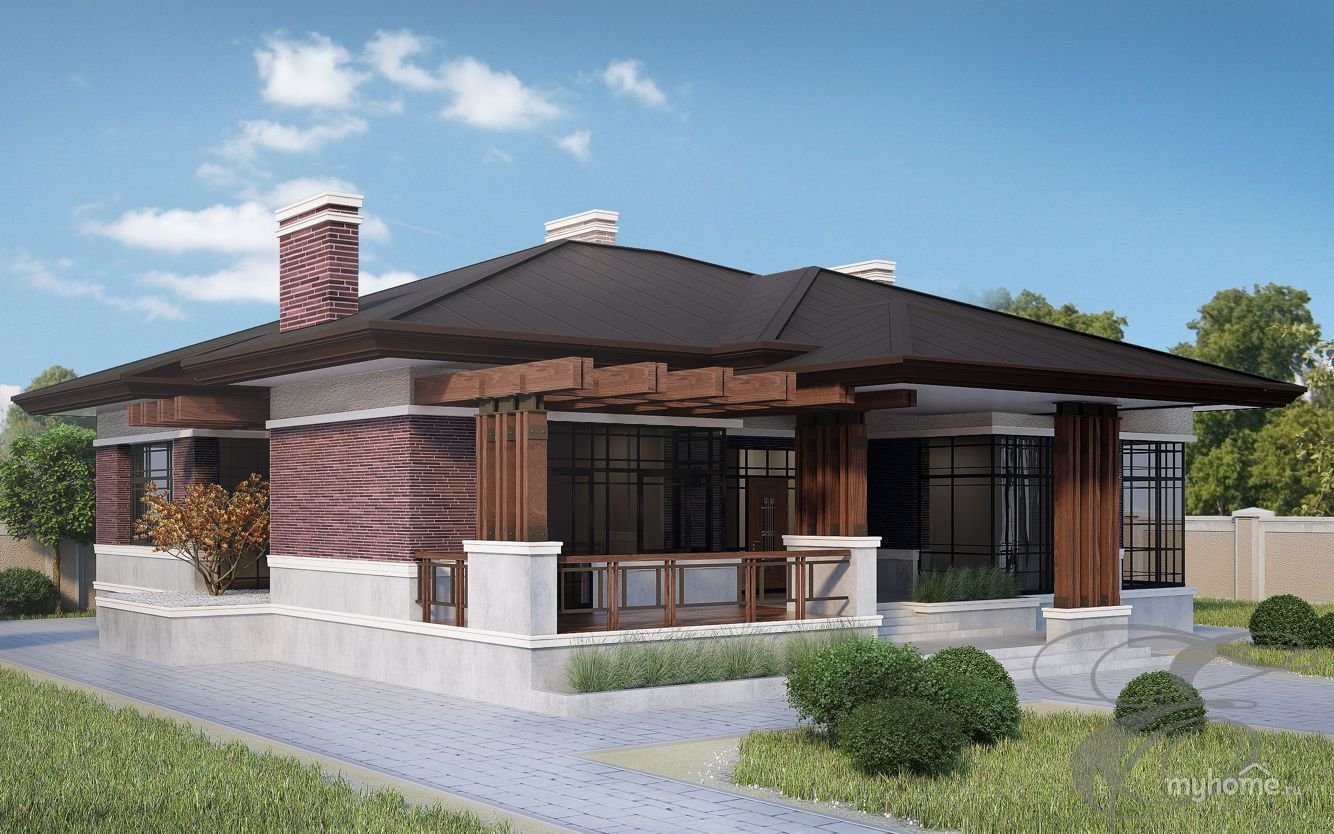 Одноэтажный дом в стиле Райта 150 кв м