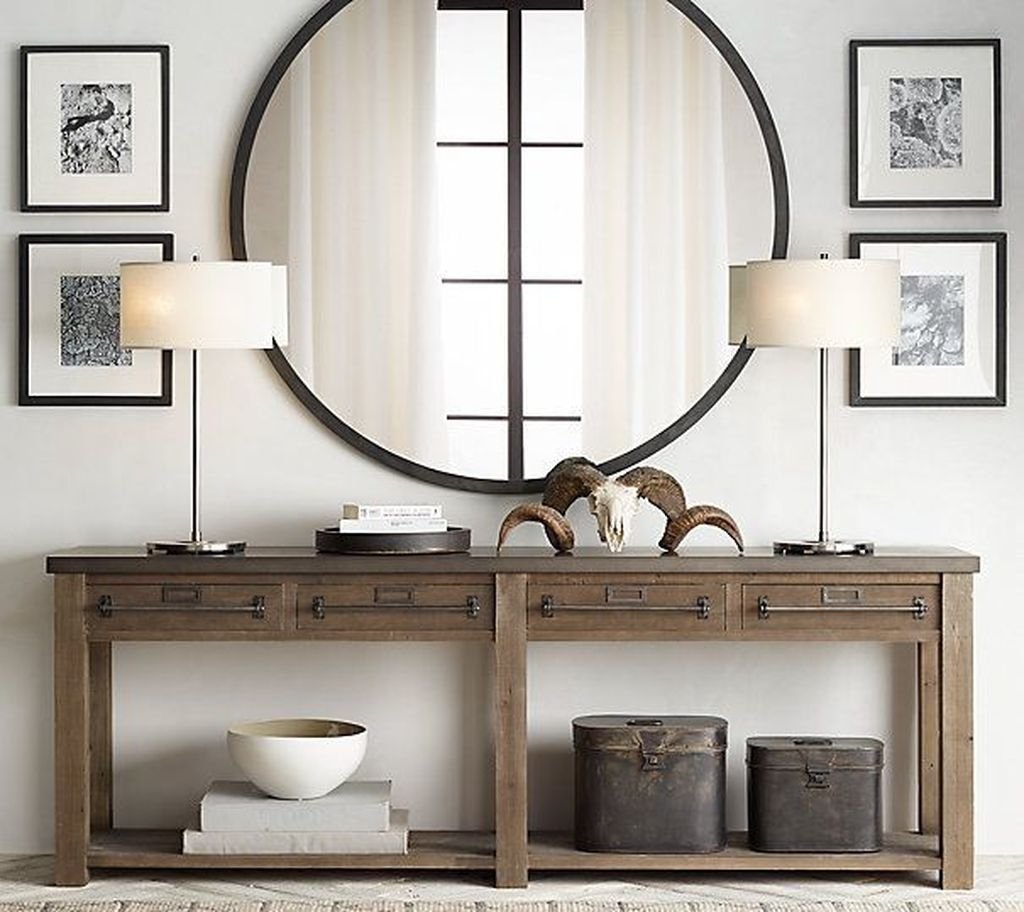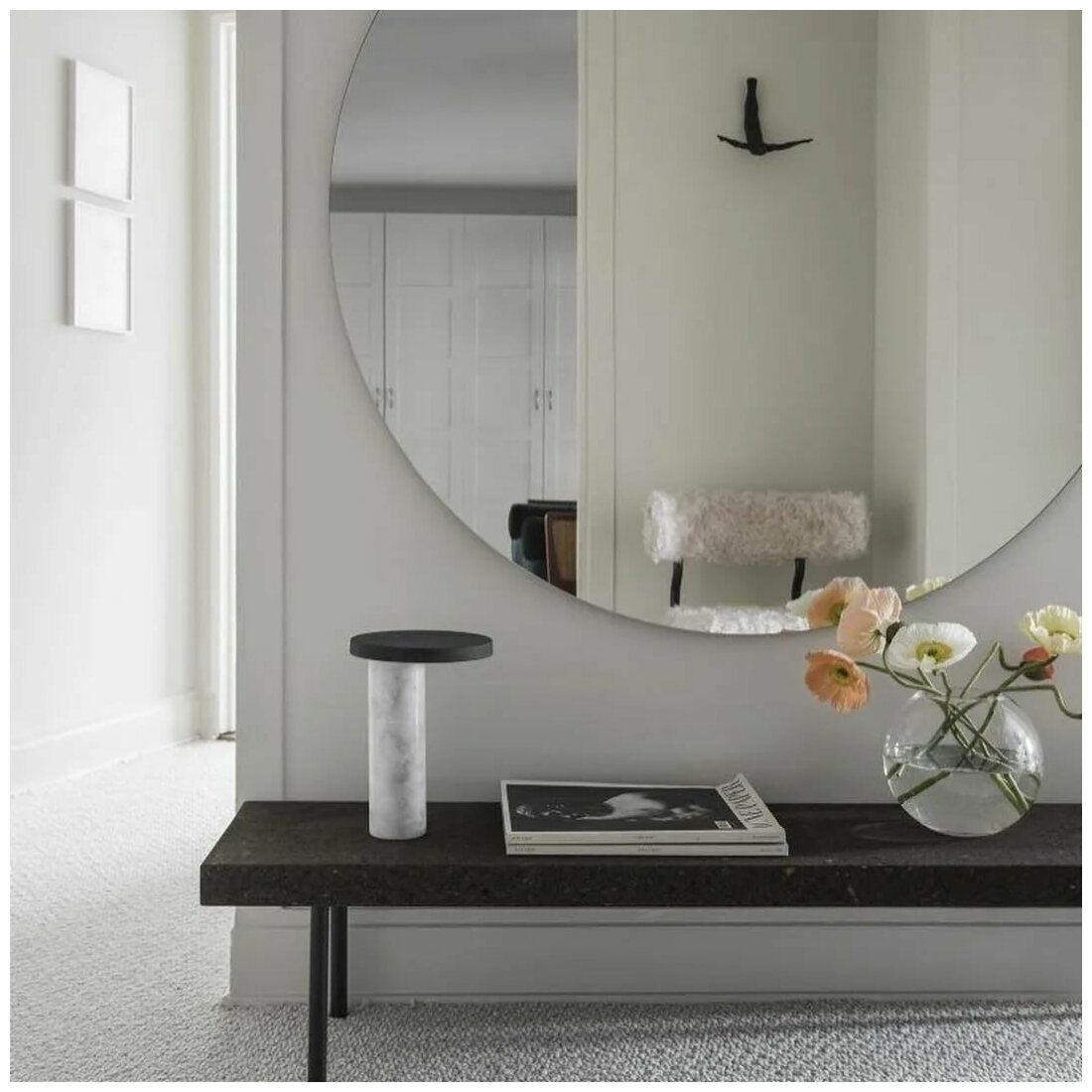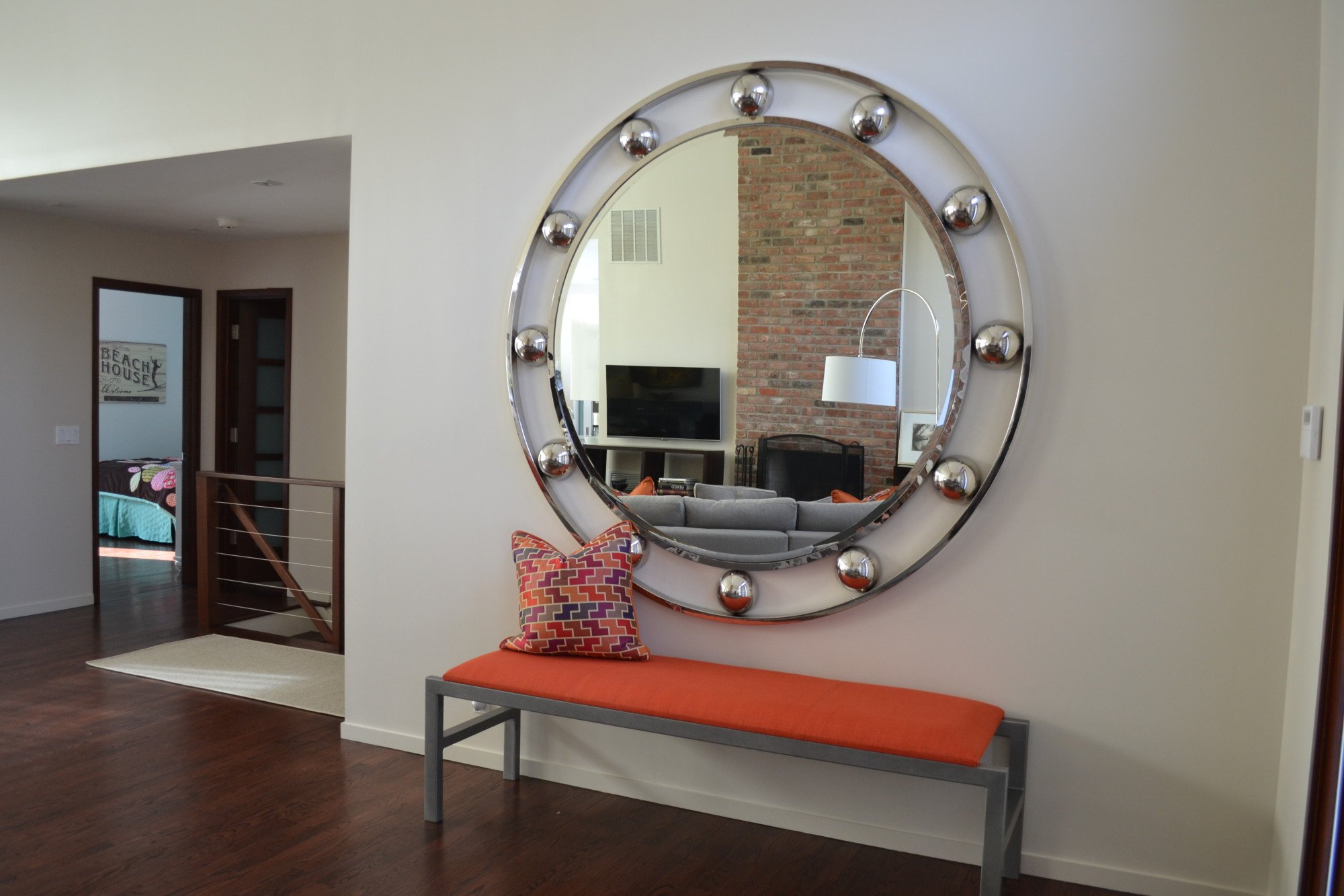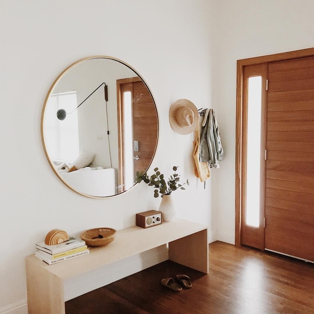 Большое круглое зеркало в прихожей