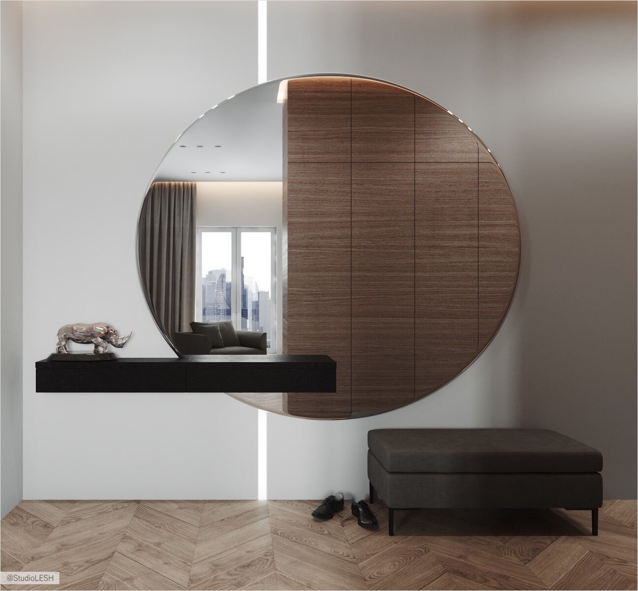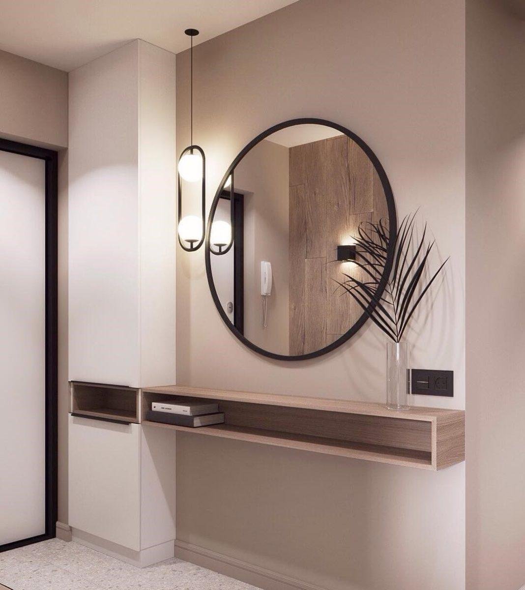 Круглое зеркало в интерьере прихожей