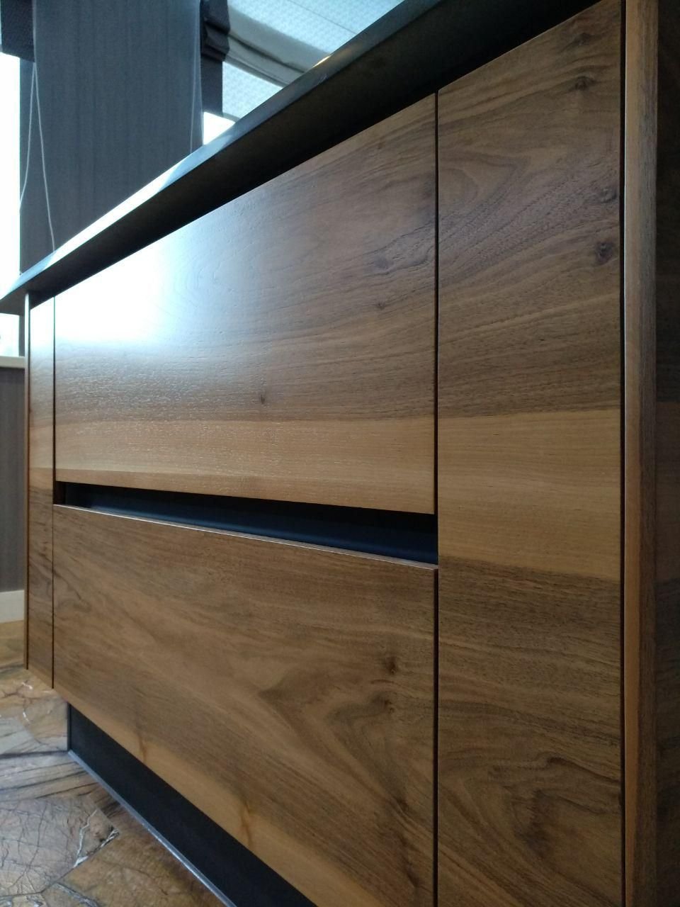 Ручки интегрированные в фасад шпон для кухни