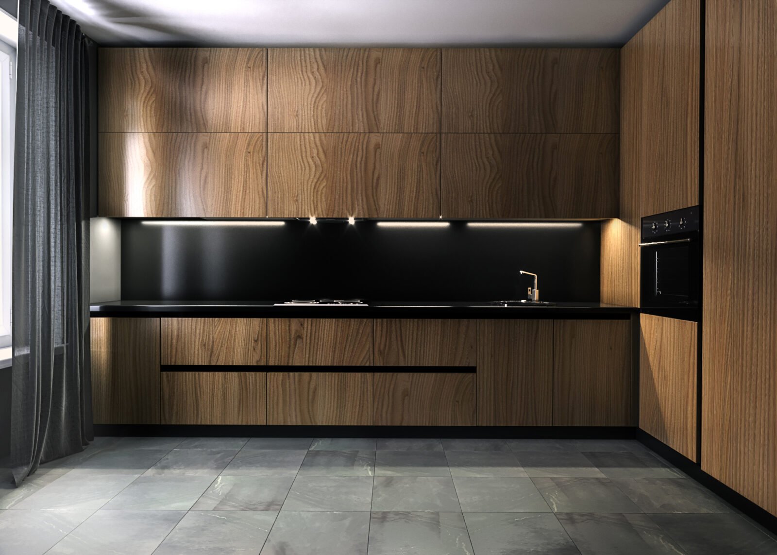 Кухни в современном стиле шпон ореха
