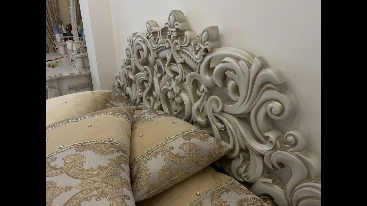 Кровать с резным изголовьем