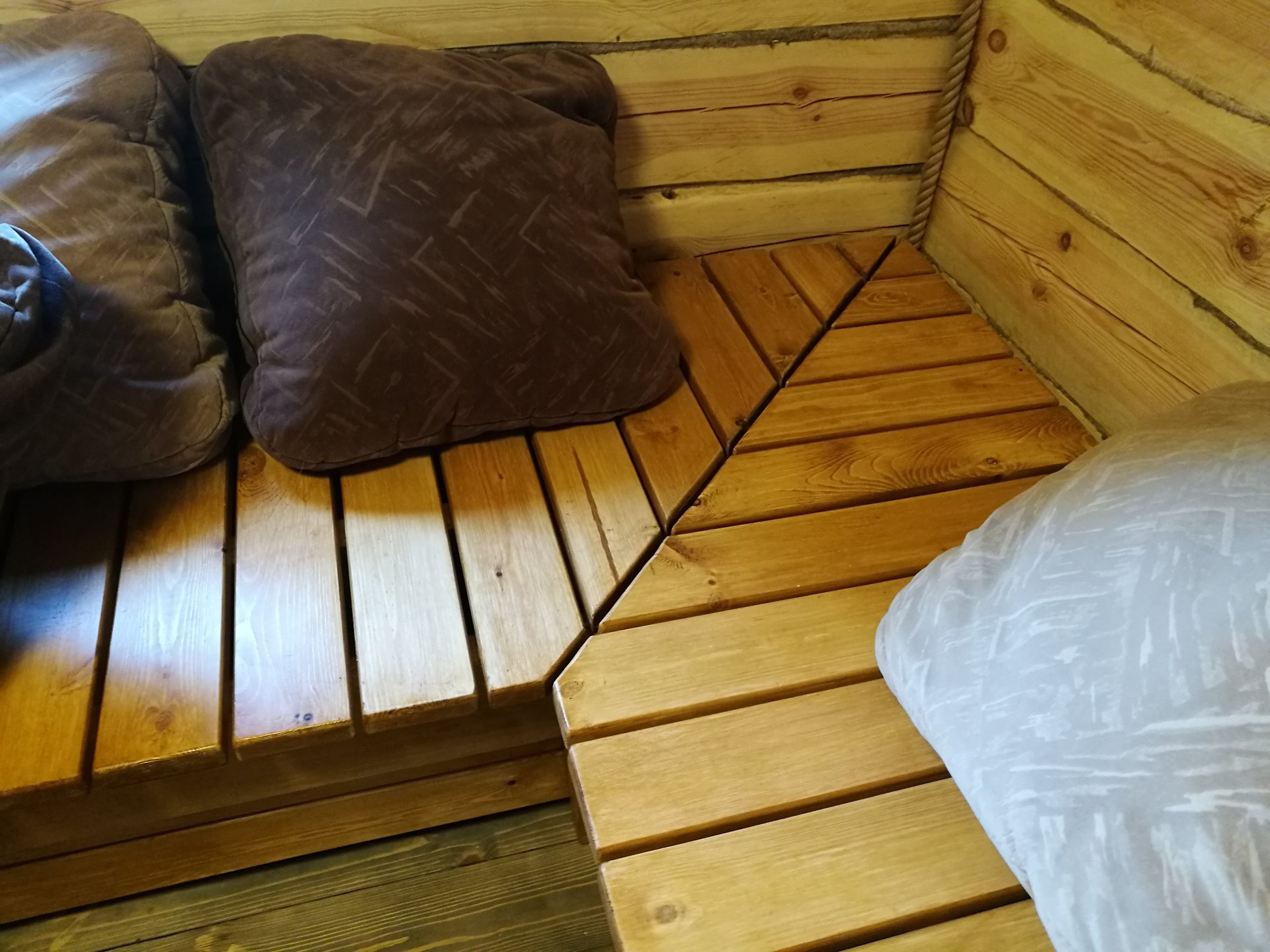 Деревянные диваны в предбаннике