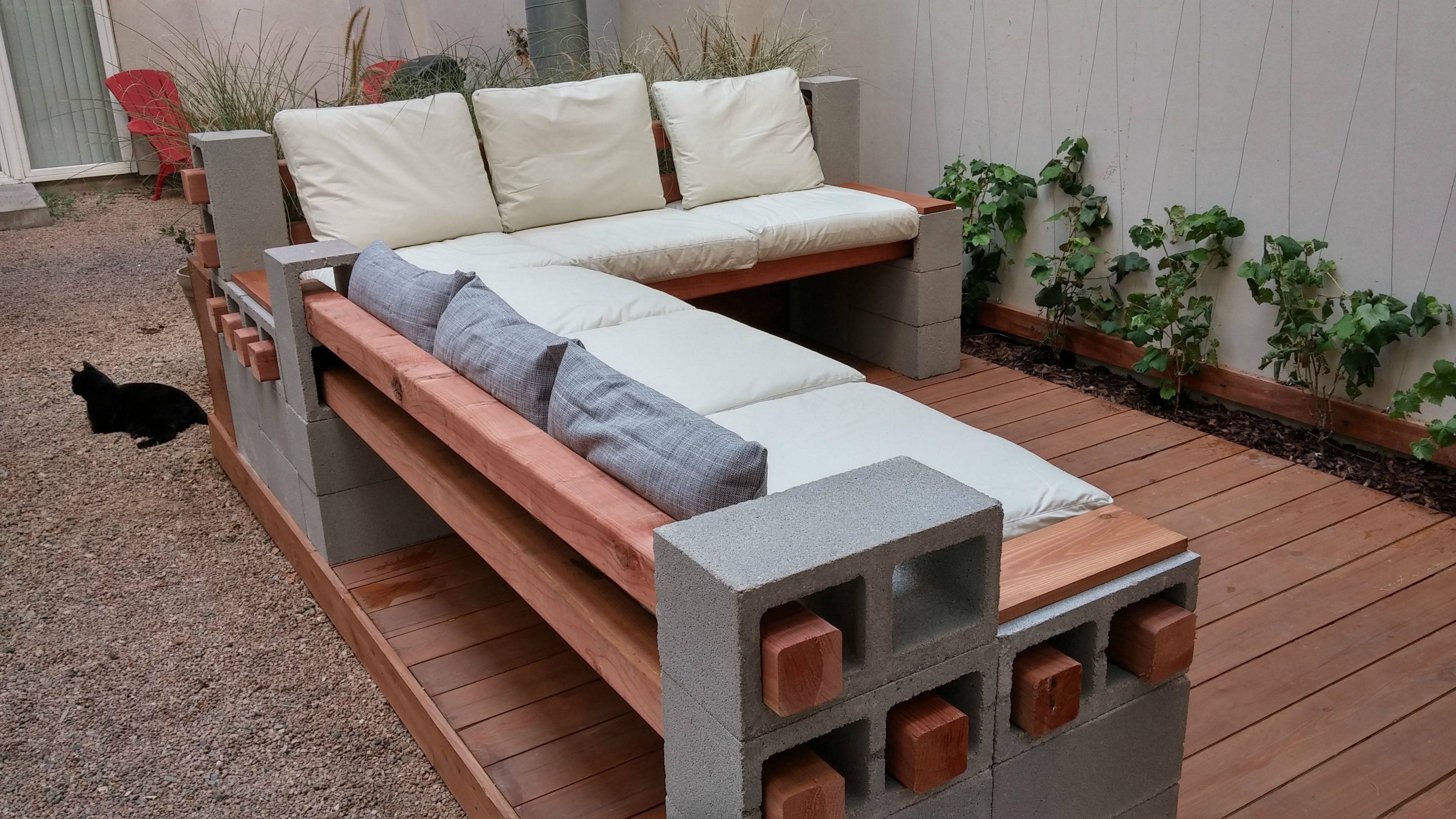 Скамейка из блоков и бруса