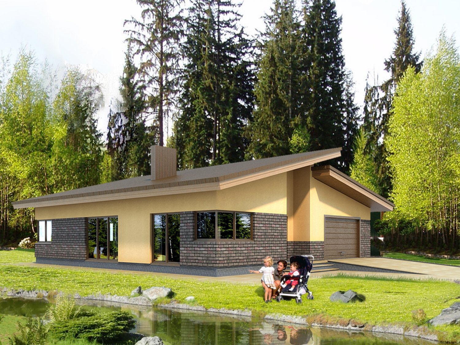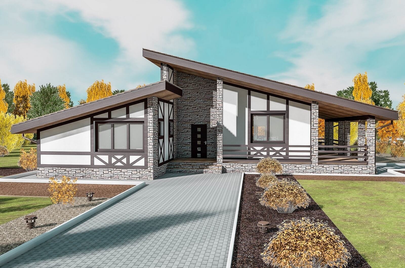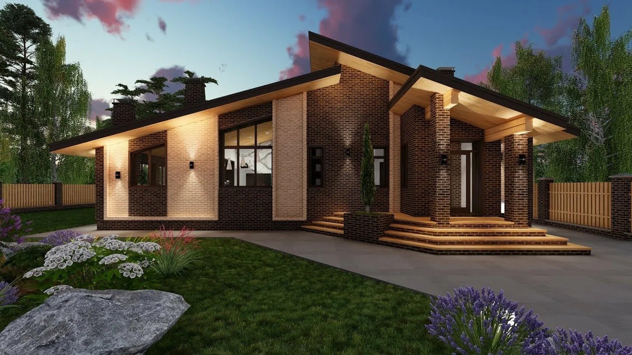 Дом Шале одноэтажный 100 кв.м из кирпича