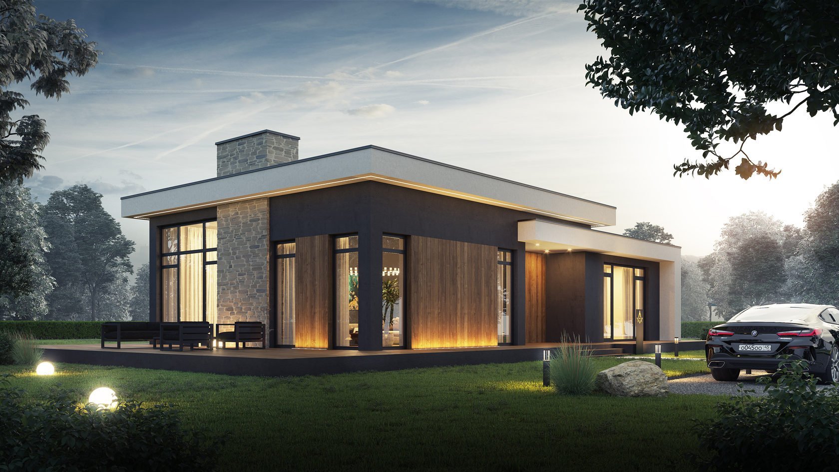 Дом в стиле лофт одноэтажный с односкатной крышей
