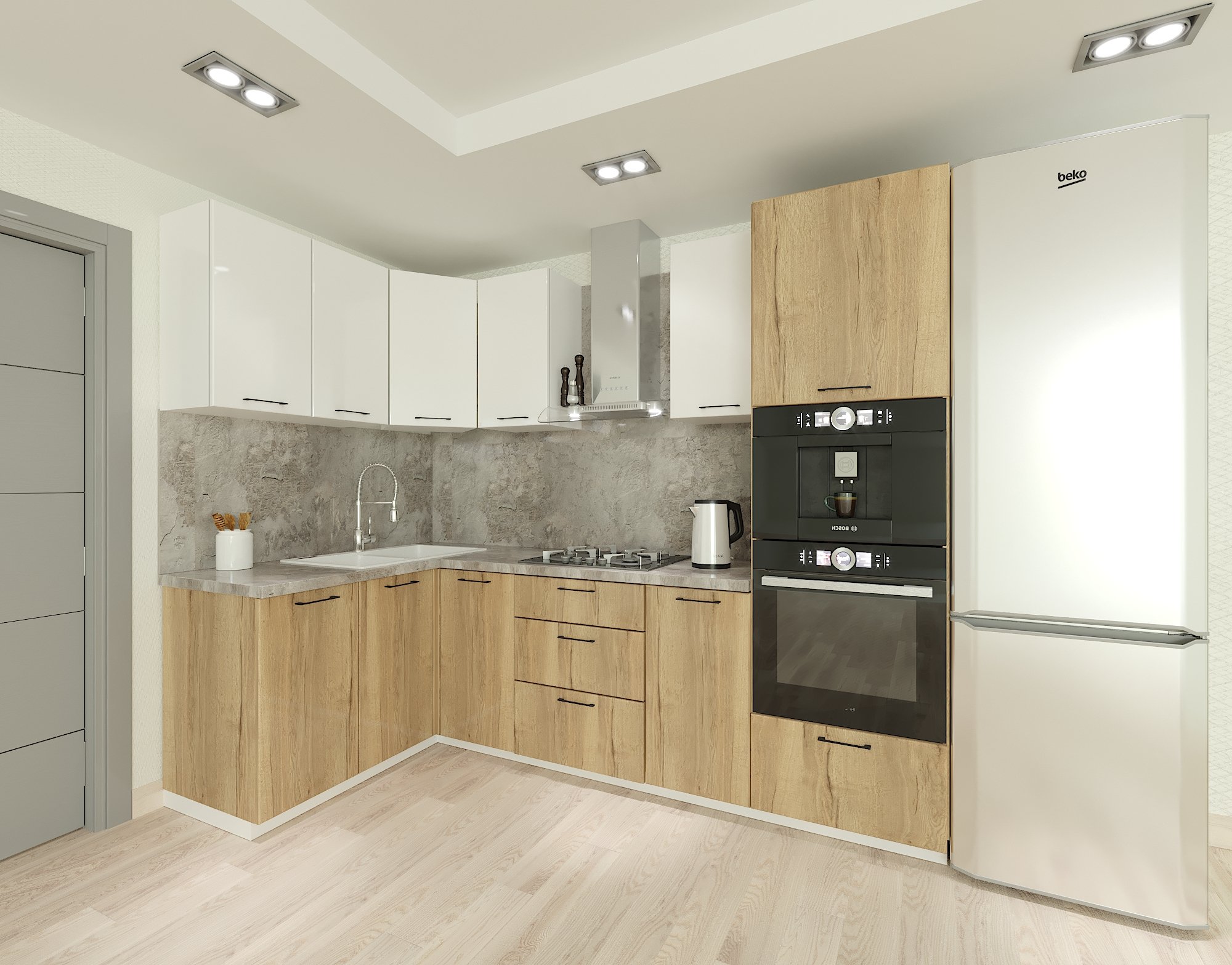 Кухня с фасадами Эггер под дерево