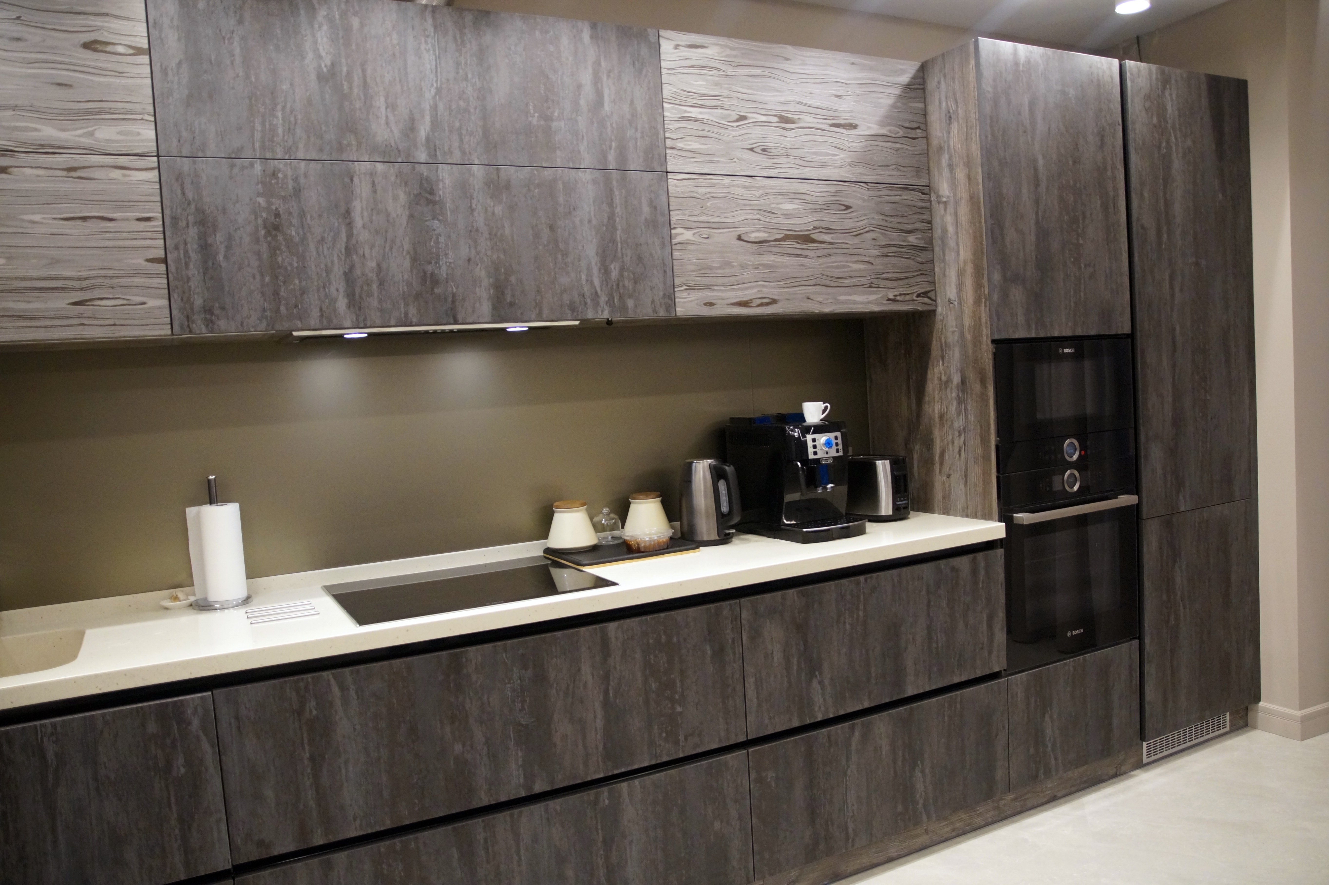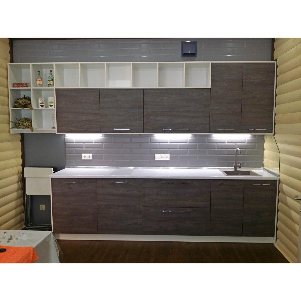 Прямая кухня с фасадами Эггер